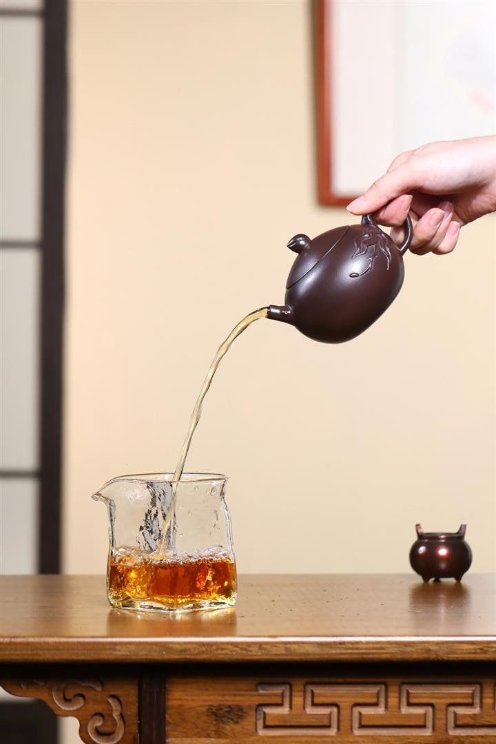 【泥料特點】砂土氣重,似淳實農民,日久使用,漸露鋒芒,養成變化,溫潤莊重。紫砂是壹種雙重氣孔結構的多孔性材質,氣孔微細,密度高。用紫砂壺沏茶,不失原味,且香不渙散,得茶之真香真味。紫砂使用越久,壺身色澤越發光亮照人,氣韻溫雅。紫砂壺長久使用器身會因撫摸擦拭,變得越發溫潤光澤。