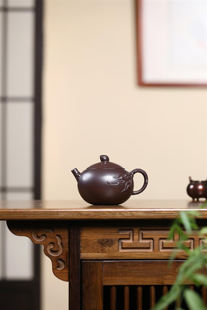 原礦皺皮朱泥墨梅扁碗玉壺茶壺POT6804