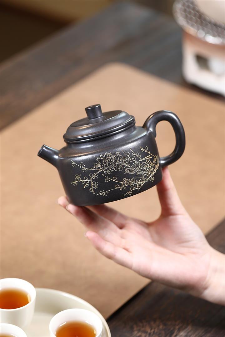 【作品介紹】此款壺形線條流暢,壺把,壺嘴,壺身壹氣呵成栩栩如生,是收藏把玩的好壺,泥料色澤古樸典雅,日久使用,漸露鋒芒,養成變化快,溫潤莊重,用其泡茶,使用的年代久,壺身就溫潤,泡出來的茶湯也就醇郁芳馨。