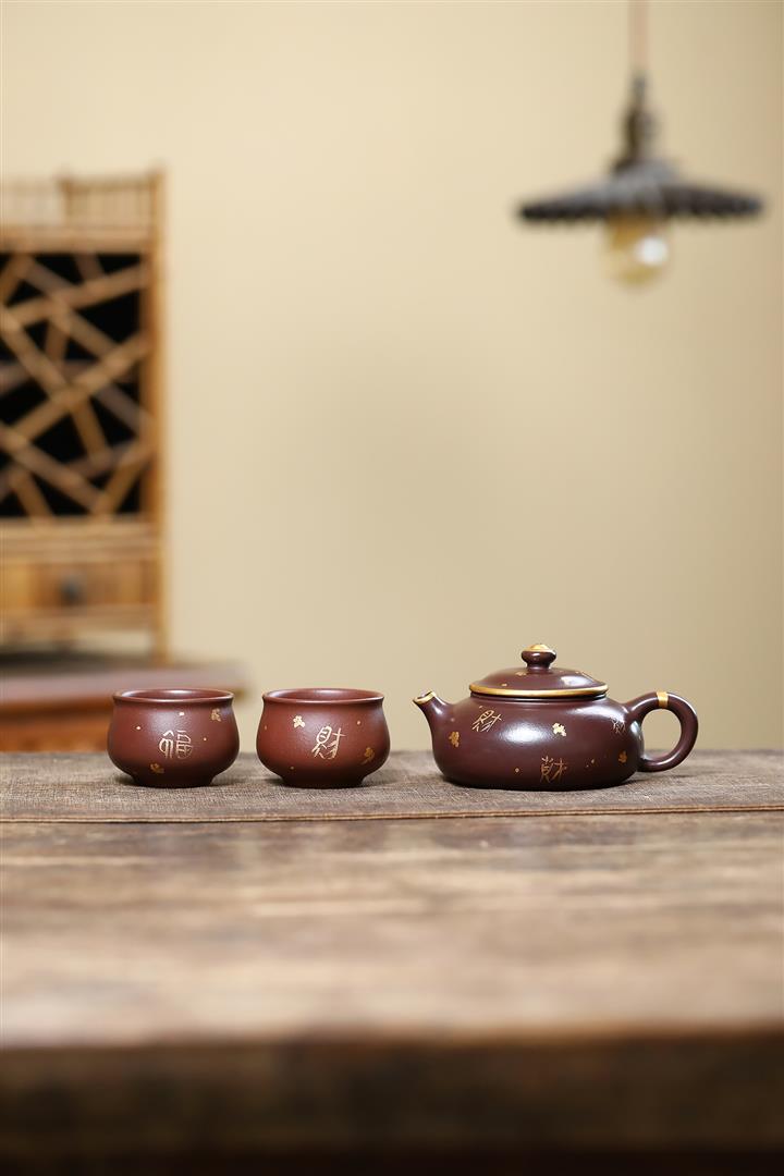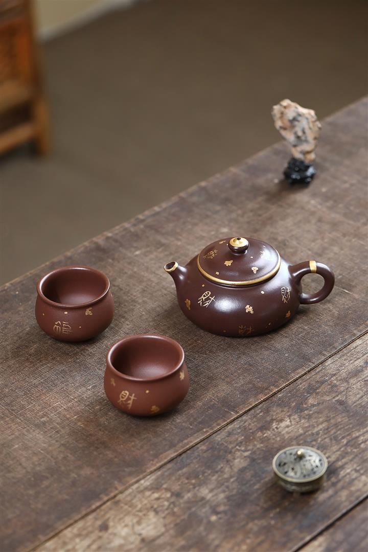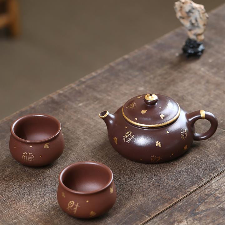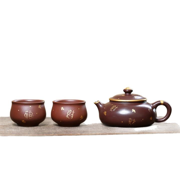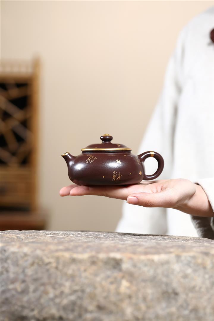 180cc原礦紫泥來財描金寒江茶壺POT9283
