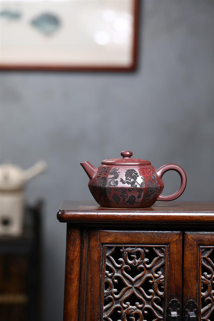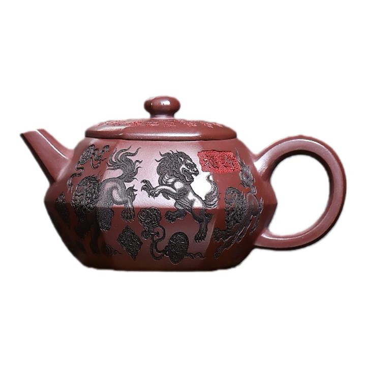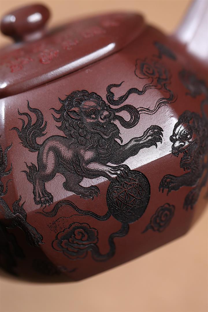 390cc原礦老紫泥六方福獅獻瑞茶壺POT9302