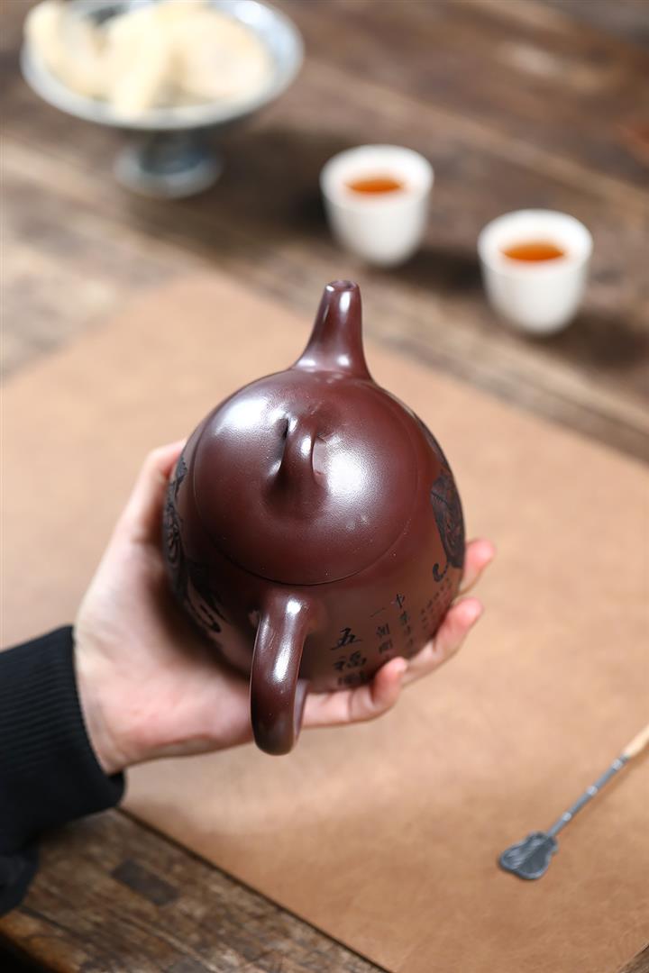 【作品介紹】此款壺形線條流暢,壺把,壺嘴,壺身壹氣呵成栩栩如生,是收藏把玩的好壺,泥料色澤古樸典雅,日久使用,漸露鋒芒,養成變化快,溫潤莊重,用其泡茶,使用的年代久,壺身就溫潤,泡出來的茶湯也就醇郁芳馨。