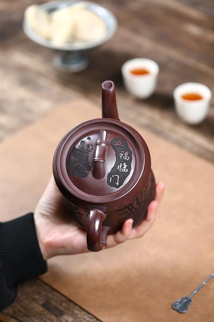 650cc原礦石紅熊貓圓竹泡茶壺POT9305