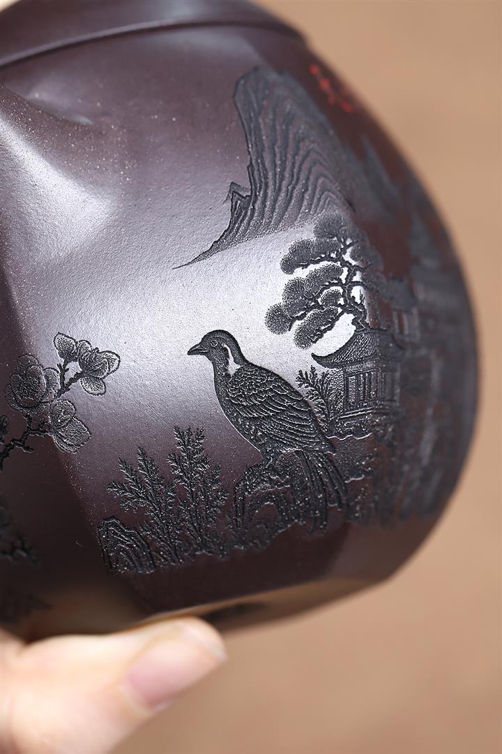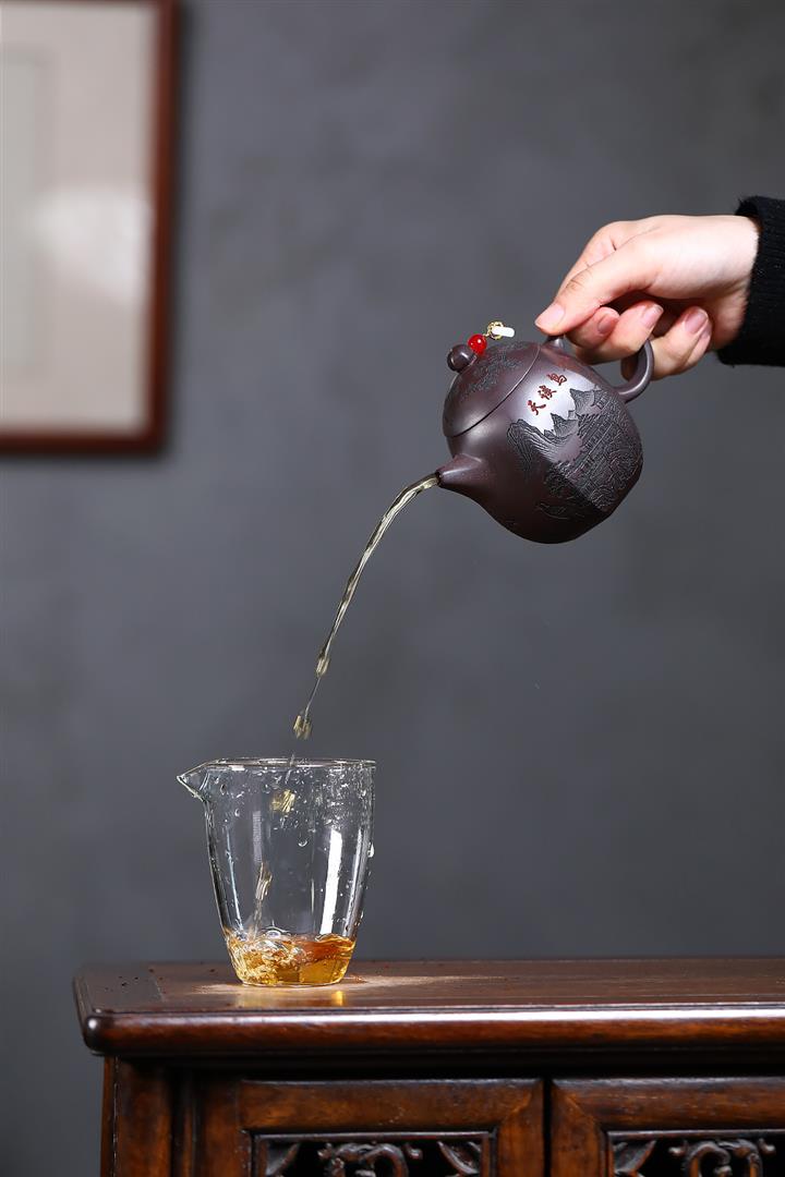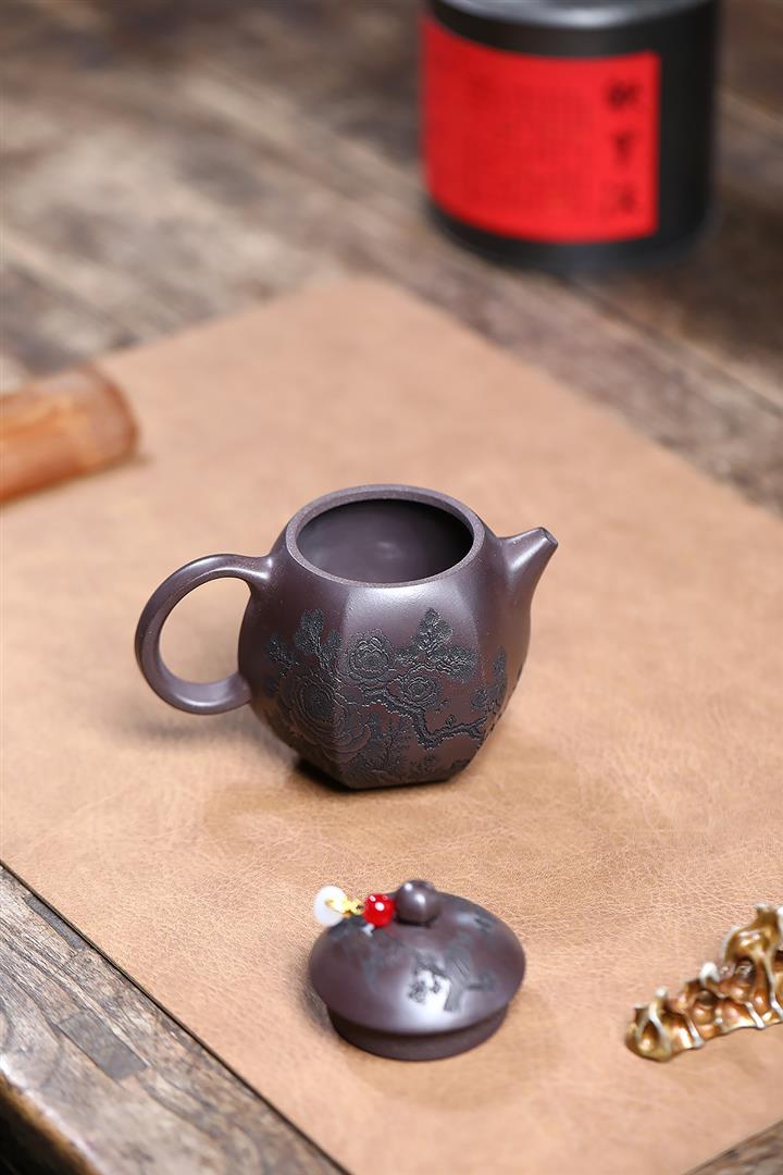 【泥料特點】砂土氣重,似淳實農民,日久使用,漸露鋒芒,養成變化,溫潤莊重。紫砂是壹種雙重氣孔結構的多孔性材質,氣孔微細,密度高。用紫砂壺沏茶,不失原味,且香不渙散,得茶之真香真味。紫砂使用越久,壺身色澤越發光亮照人,氣韻溫雅。紫砂壺長久使用器身會因撫摸擦拭,變得越發溫潤光澤。