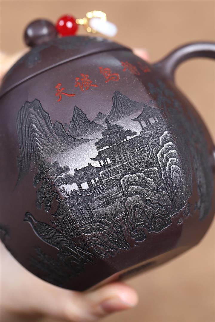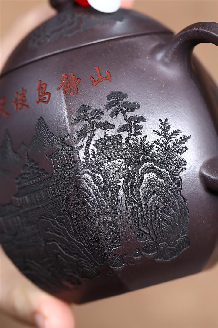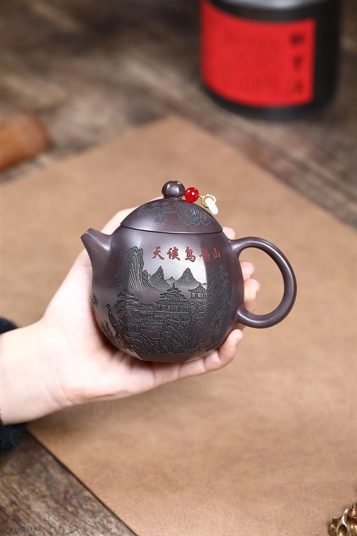原礦粉泥純手工描金琺瑯寒江茶壺POT6796