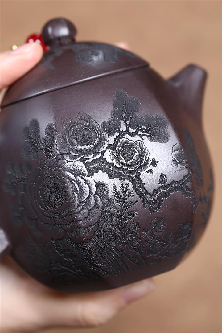 高溫還原燒手製牡丹西施壺POT6792