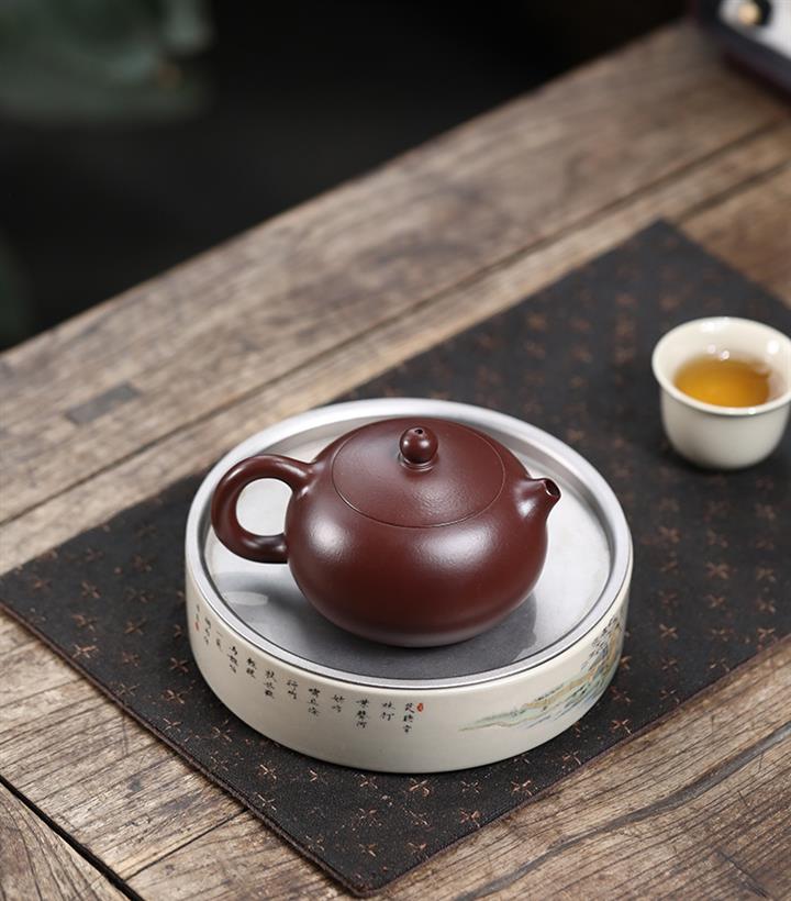 【泥料特點】砂土氣重,似淳實農民,日久使用,漸露鋒芒,養成變化,溫潤莊重。紫砂是壹種雙重氣孔結構的多孔性材質,氣孔微細,密度高。用紫砂壺沏茶,不失原味,且香不渙散,得茶之真香真味。紫砂使用越久,壺身色澤越發光亮照人,氣韻溫雅。紫砂壺長久使用器身會因撫摸擦拭,變得越發溫潤光澤。