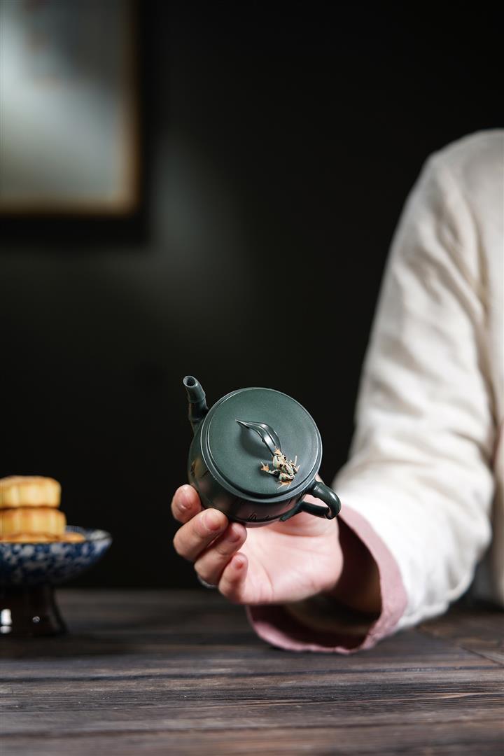 子·紫砂墨綠泥小文旦紫砂壺POT6108