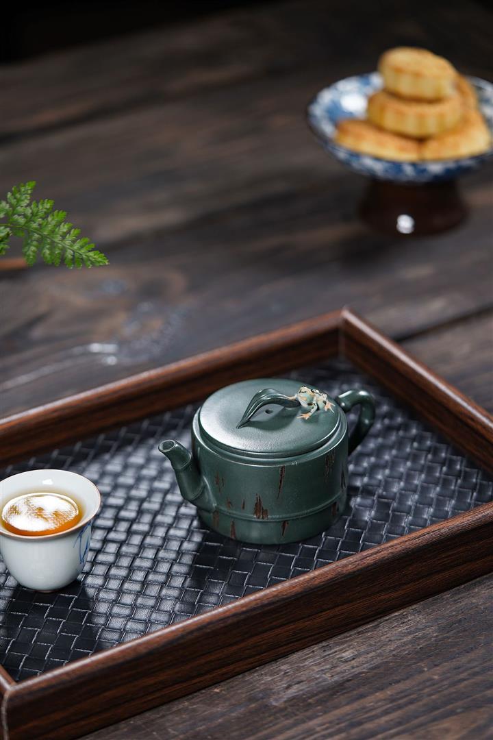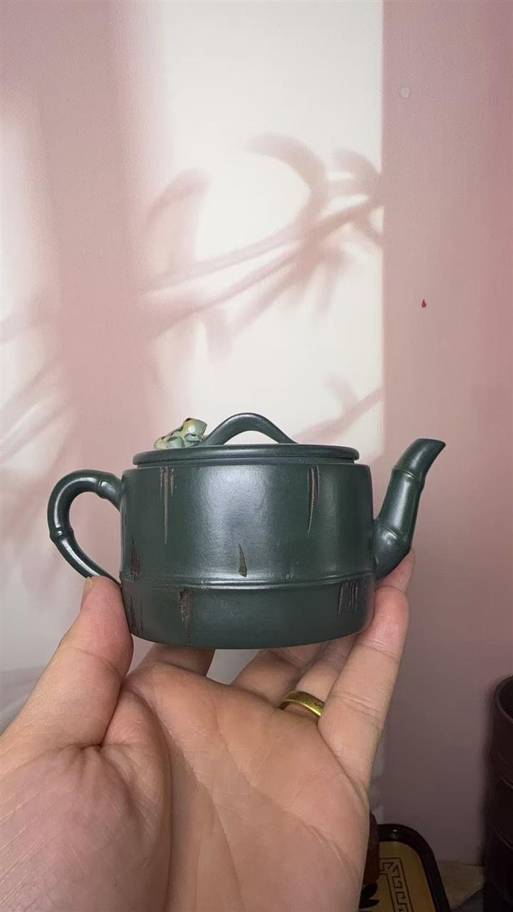 150cc原礦綠泥蛙趣竹節茶壺POT9341