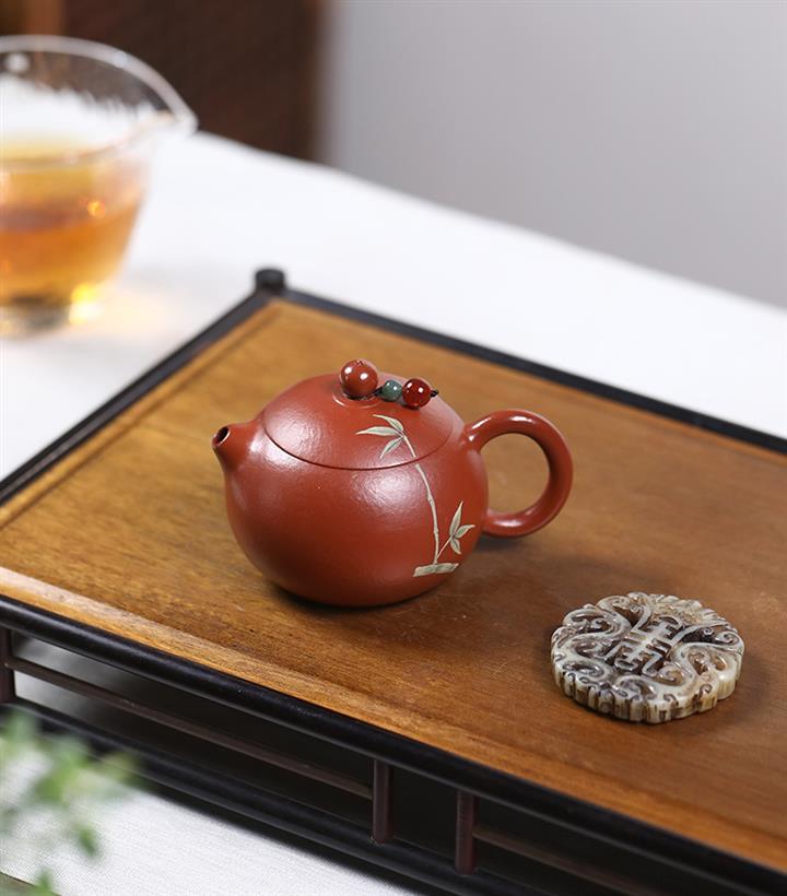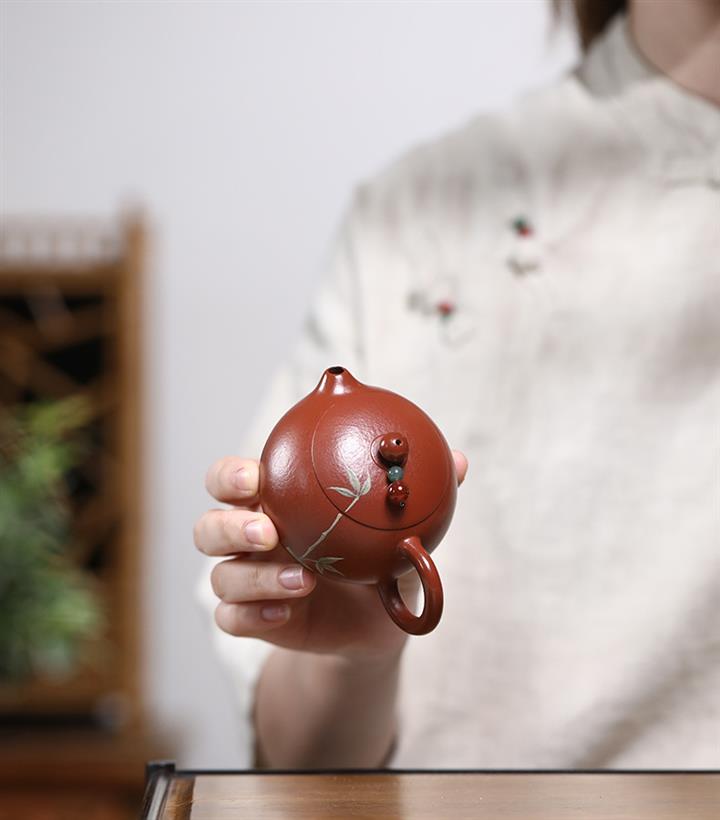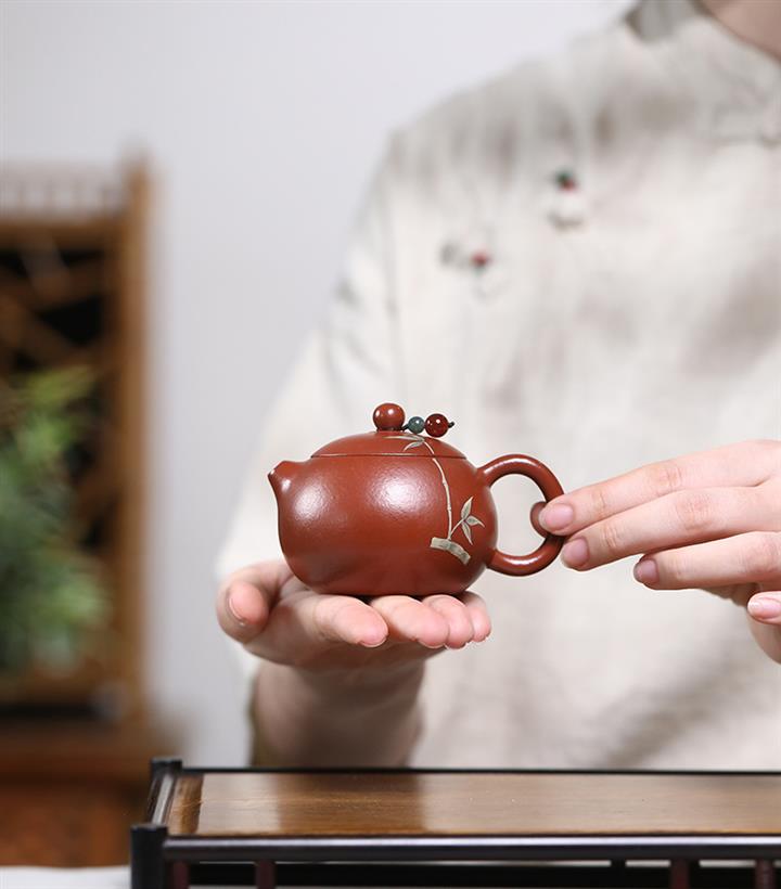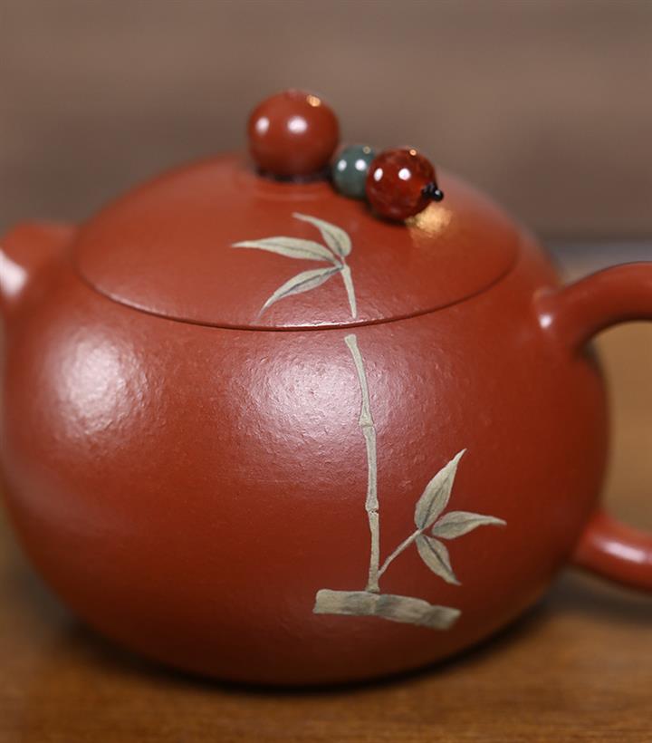 120cc原礦朱泥小西施泥繪青竹泡茶壺POT9344