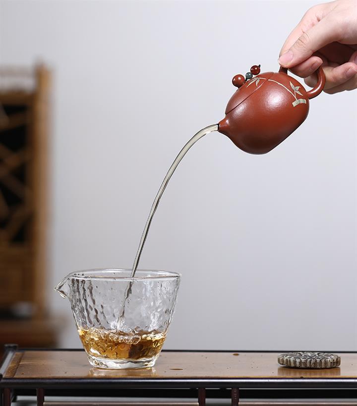 【泥料特點】砂土氣重,似淳實農民,日久使用,漸露鋒芒,養成變化,溫潤莊重。紫砂是壹種雙重氣孔結構的多孔性材質,氣孔微細,密度高。用紫砂壺沏茶,不失原味,且香不渙散,得茶之真香真味。紫砂使用越久,壺身色澤越發光亮照人,氣韻溫雅。紫砂壺長久使用器身會因撫摸擦拭,變得越發溫潤光澤。