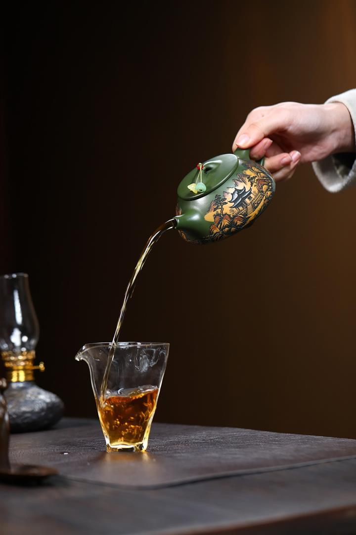 【泥料特點】砂土氣重,似淳實農民,日久使用,漸露鋒芒,養成變化,溫潤莊重。紫砂是壹種雙重氣孔結構的多孔性材質,氣孔微細,密度高。用紫砂壺沏茶,不失原味,且香不渙散,得茶之真香真味。紫砂使用越久,壺身色澤越發光亮照人,氣韻溫雅。紫砂壺長久使用器身會因撫摸擦拭,變得越發溫潤光澤。