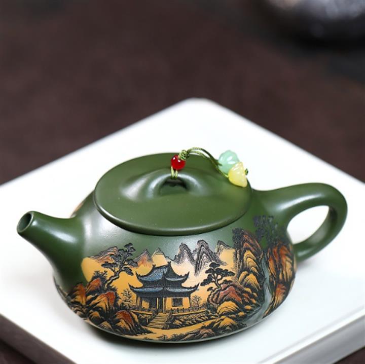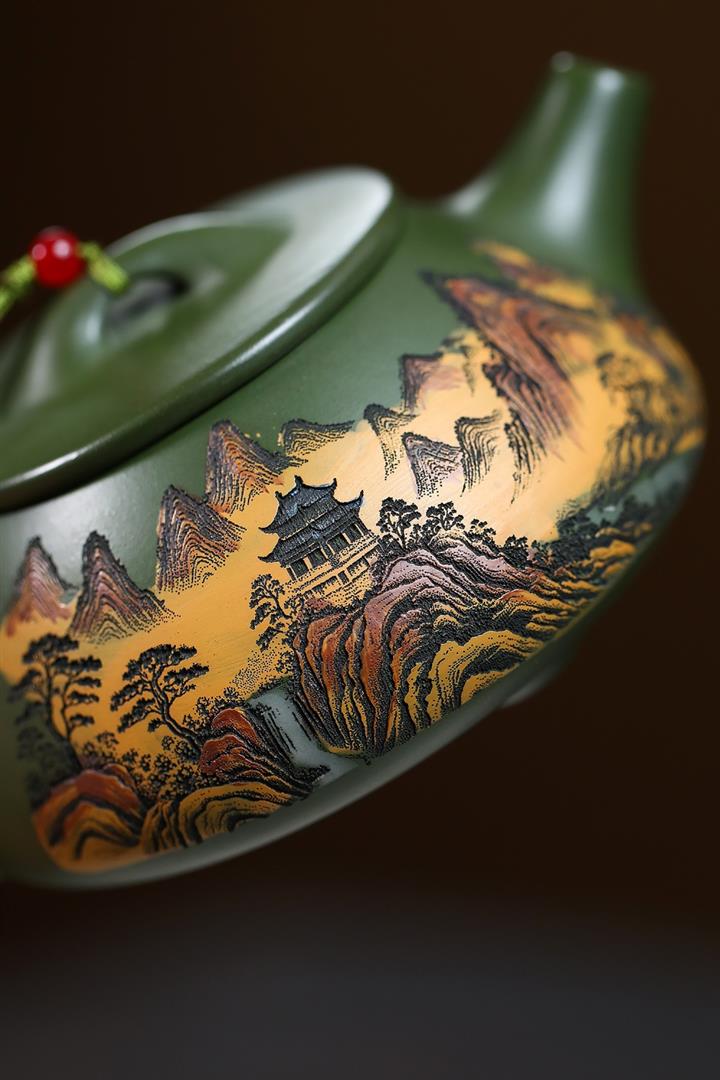 250cc原礦綠泥彩刻清幽石瓢茶壺POT9349