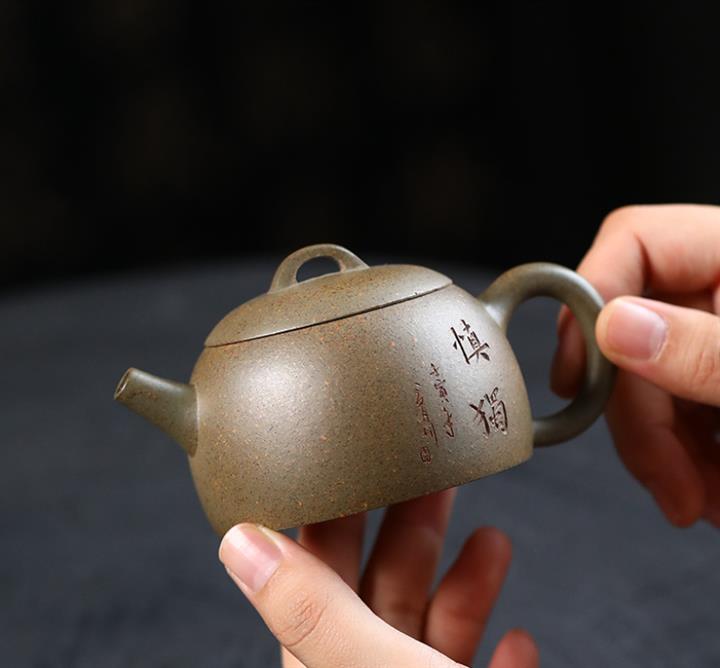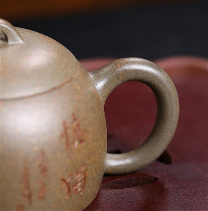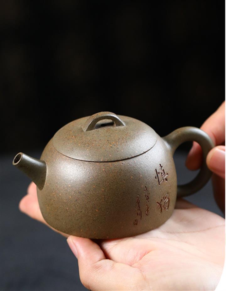 原礦龍骨金砂雙刀刻字炮嘴漢瓦茶壺POT6617