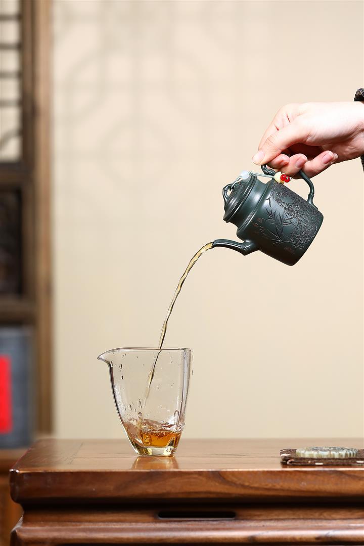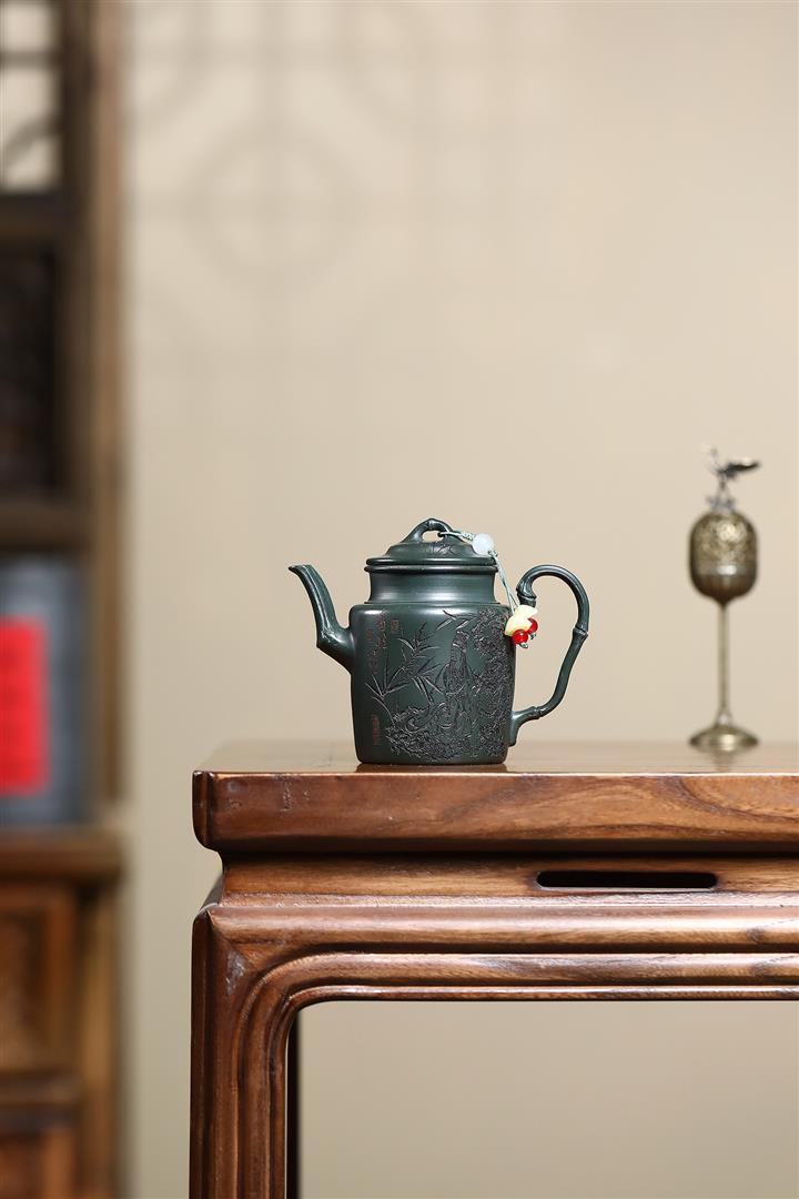 170cc原礦翡翠綠泥清風竹韻泡茶壺POT9366