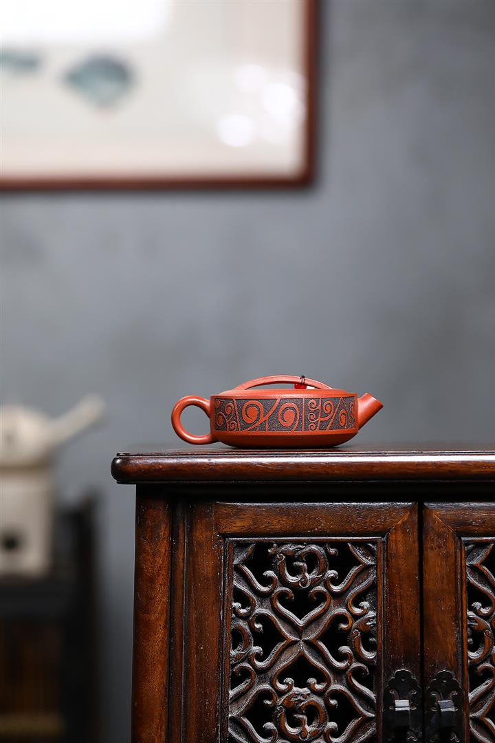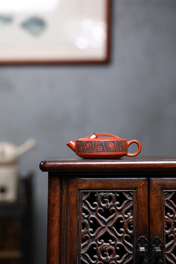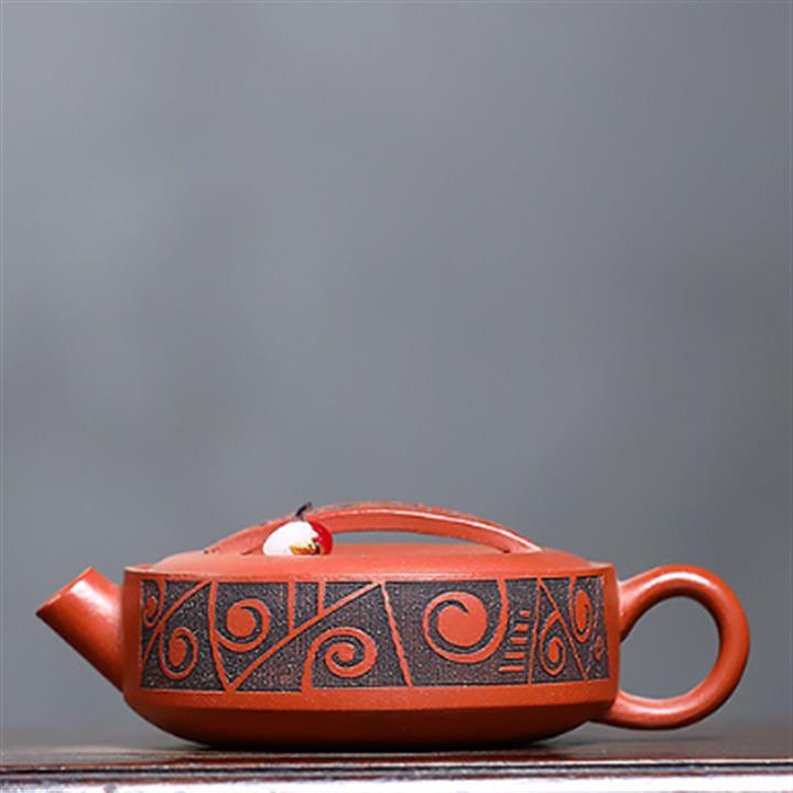 原礦綠泥刻繪如意潘壺茶壺POT7197