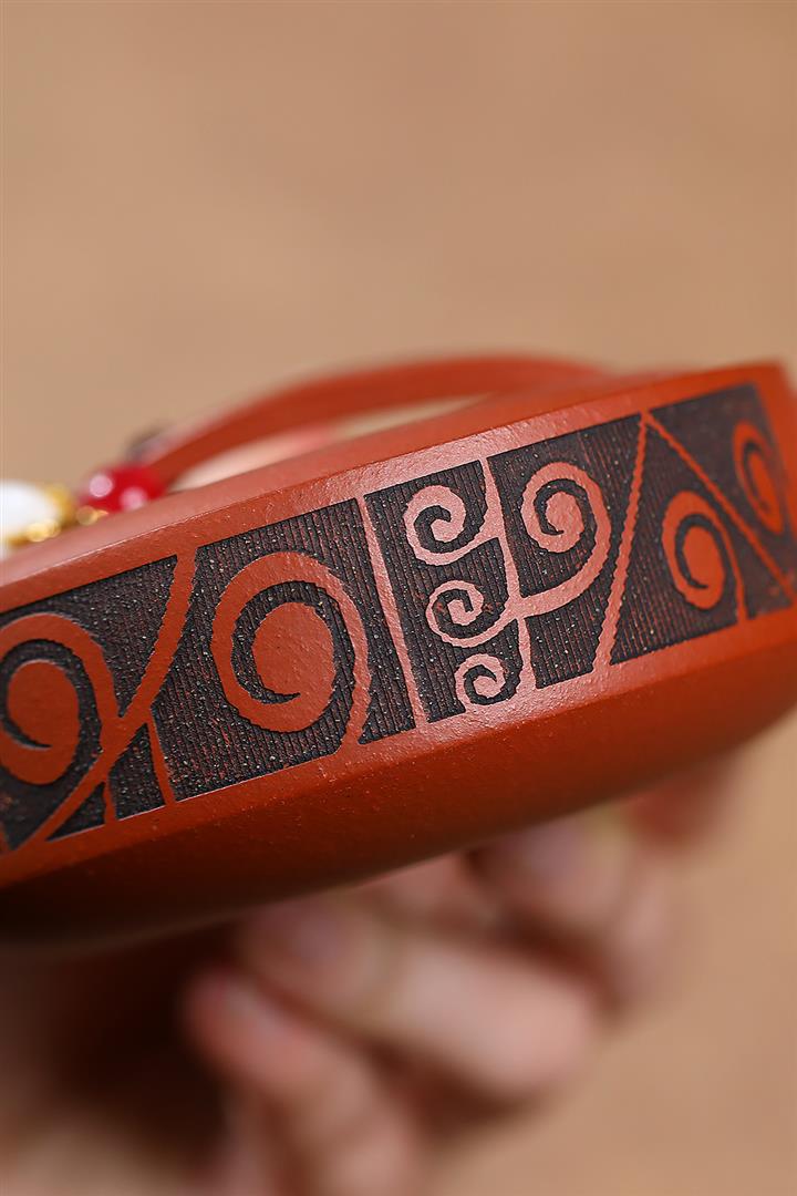 【泥料特點】砂土氣重,似淳實農民,日久使用,漸露鋒芒,養成變化,溫潤莊重。紫砂是壹種雙重氣孔結構的多孔性材質,氣孔微細,密度高。用紫砂壺沏茶,不失原味,且香不渙散,得茶之真香真味。紫砂使用越久,壺身色澤越發光亮照人,氣韻溫雅。紫砂壺長久使用器身會因撫摸擦拭,變得越發溫潤光澤。