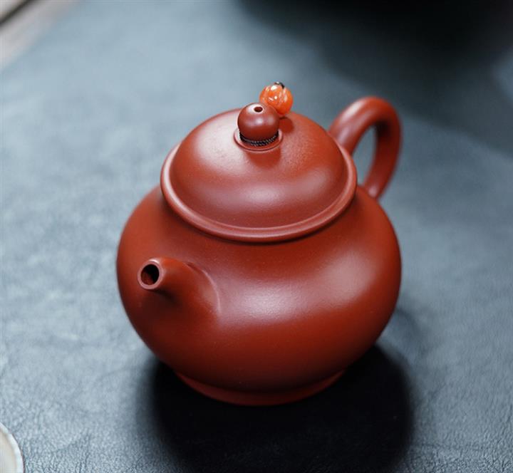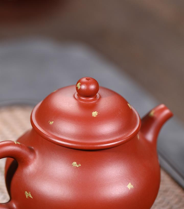 175cc原礦朱泥大紅袍灑金小潘壺泡茶壺POT9390