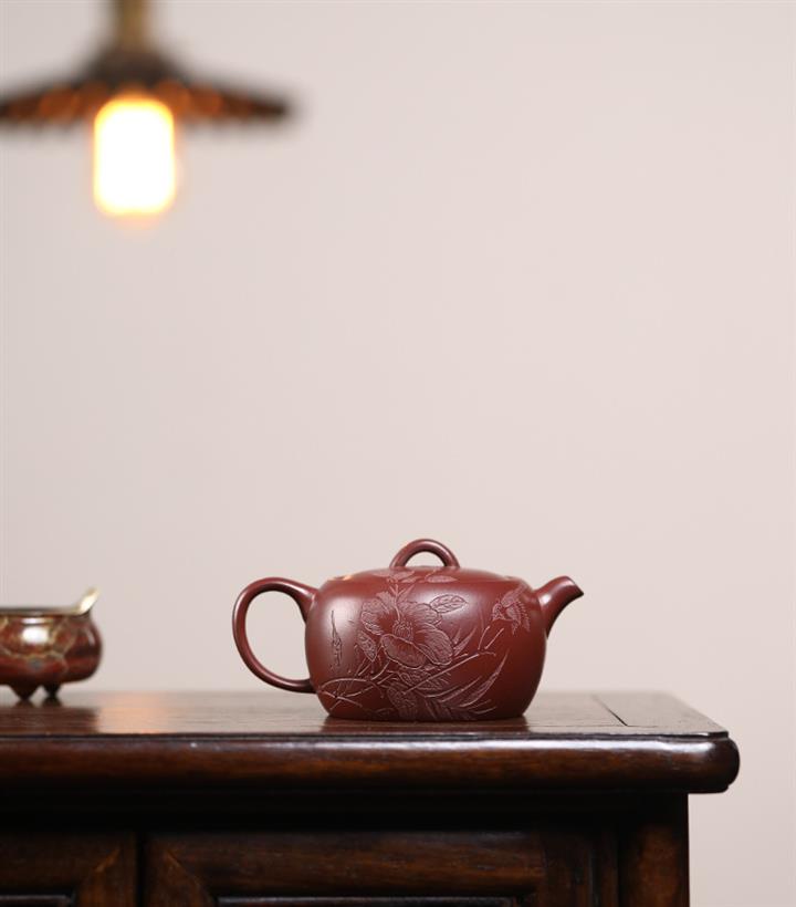 【泥料特點】砂土氣重,似淳實農民,日久使用,漸露鋒芒,養成變化,溫潤莊重。紫砂是壹種雙重氣孔結構的多孔性材質,氣孔微細,密度高。用紫砂壺沏茶,不失原味,且香不渙散,得茶之真香真味。紫砂使用越久,壺身色澤越發光亮照人,氣韻溫雅。紫砂壺長久使用器身會因撫摸擦拭,變得越發溫潤光澤。
