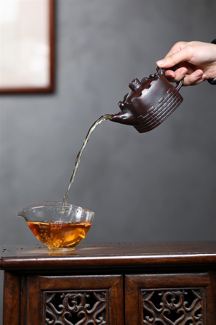 【泥料特點】砂土氣重,似淳實農民,日久使用,漸露鋒芒,養成變化,溫潤莊重。紫砂是壹種雙重氣孔結構的多孔性材質,氣孔微細,密度高。用紫砂壺沏茶,不失原味,且香不渙散,得茶之真香真味。紫砂使用越久,壺身色澤越發光亮照人,氣韻溫雅。紫砂壺長久使用器身會因撫摸擦拭,變得越發溫潤光澤。