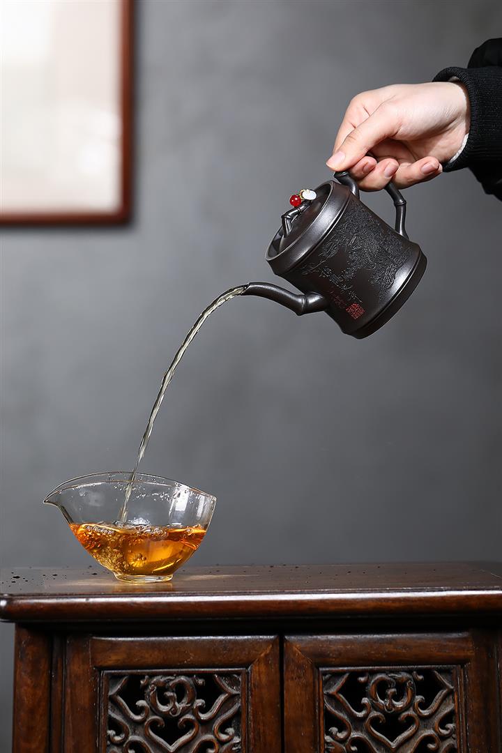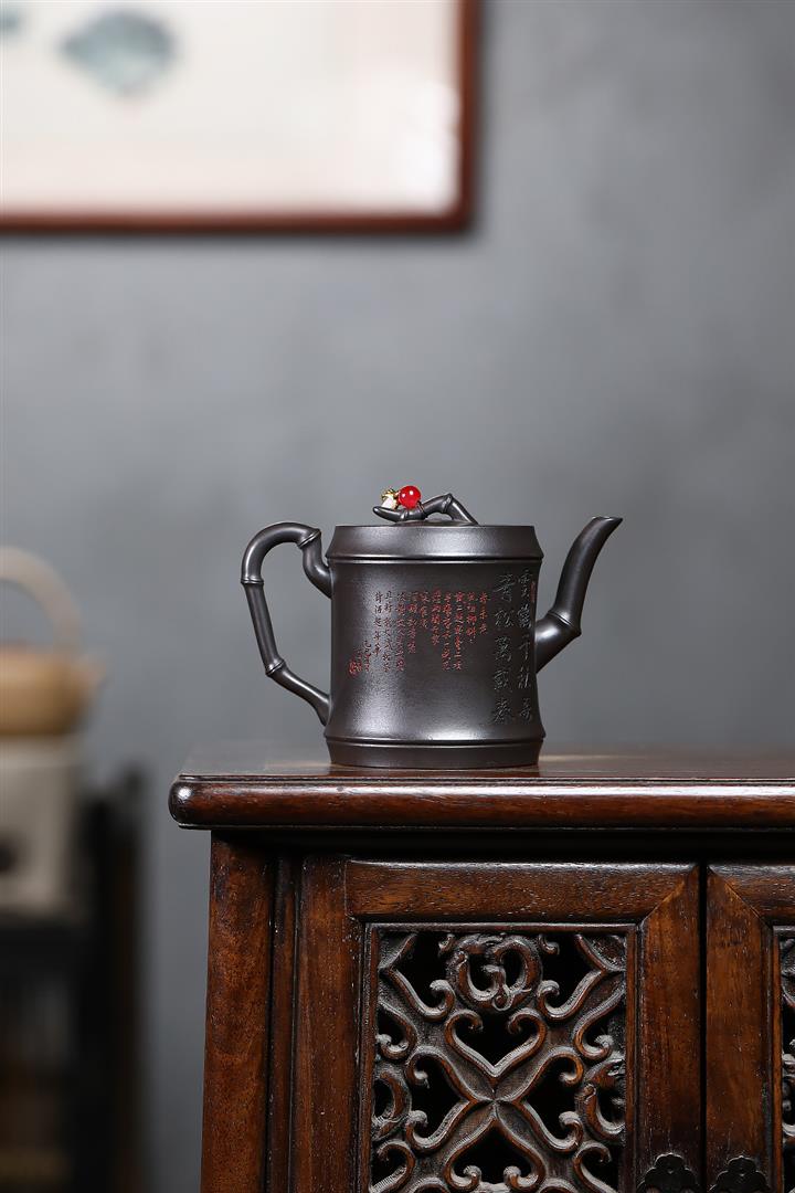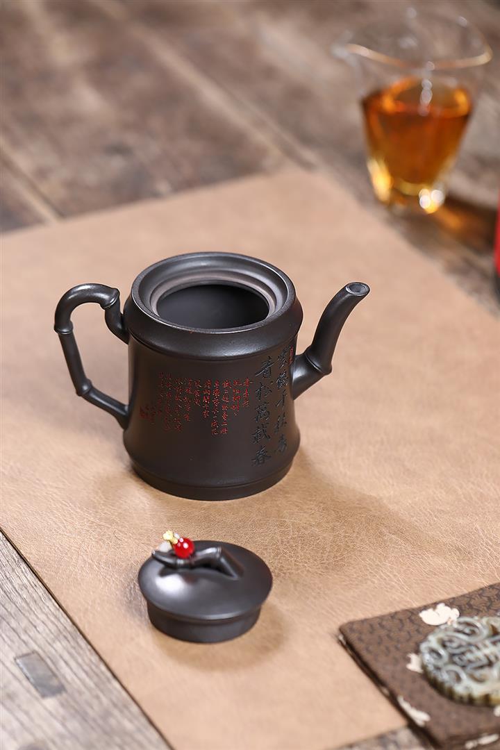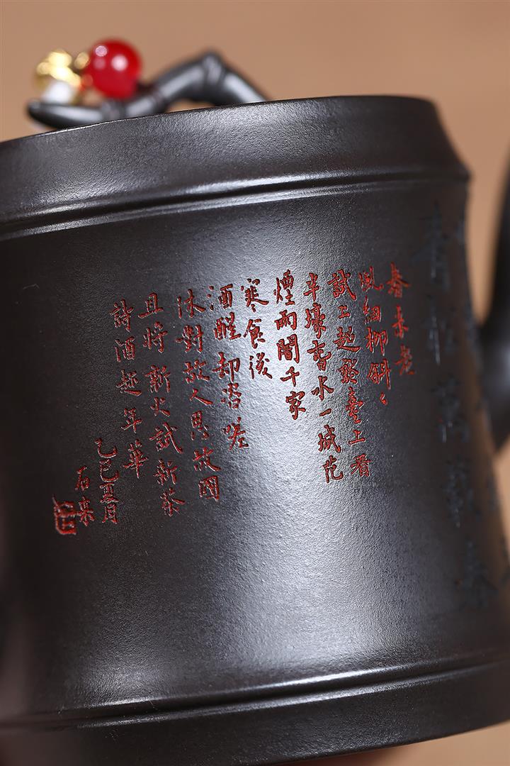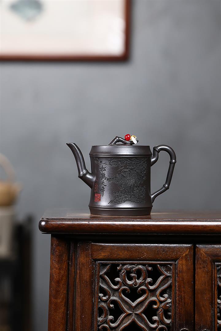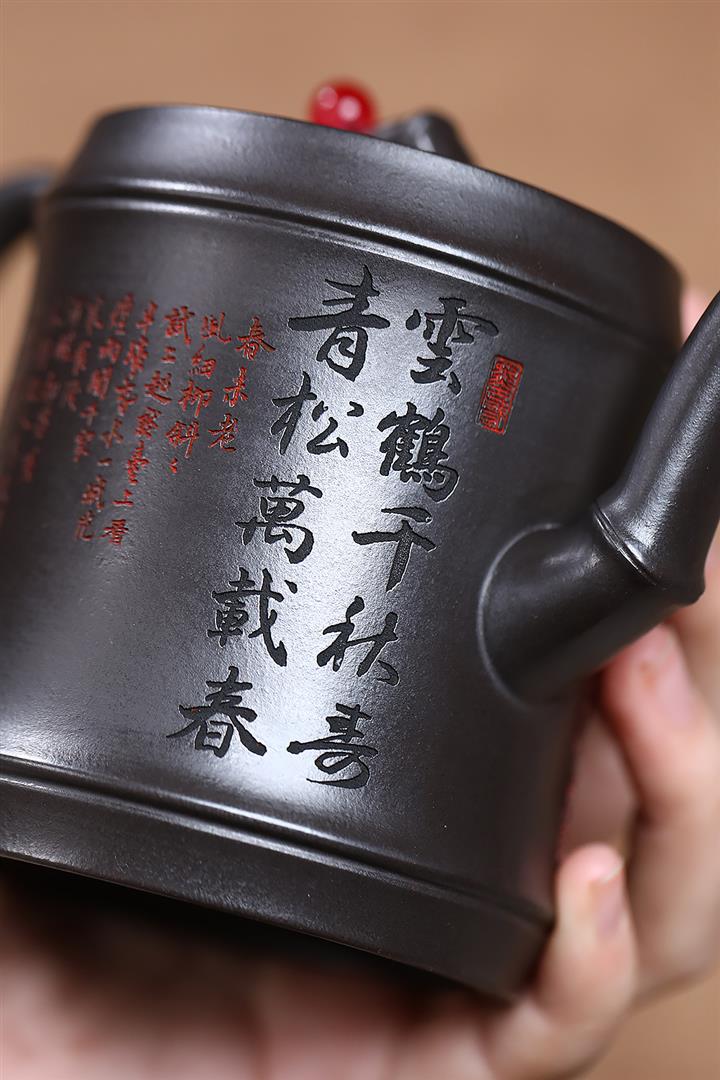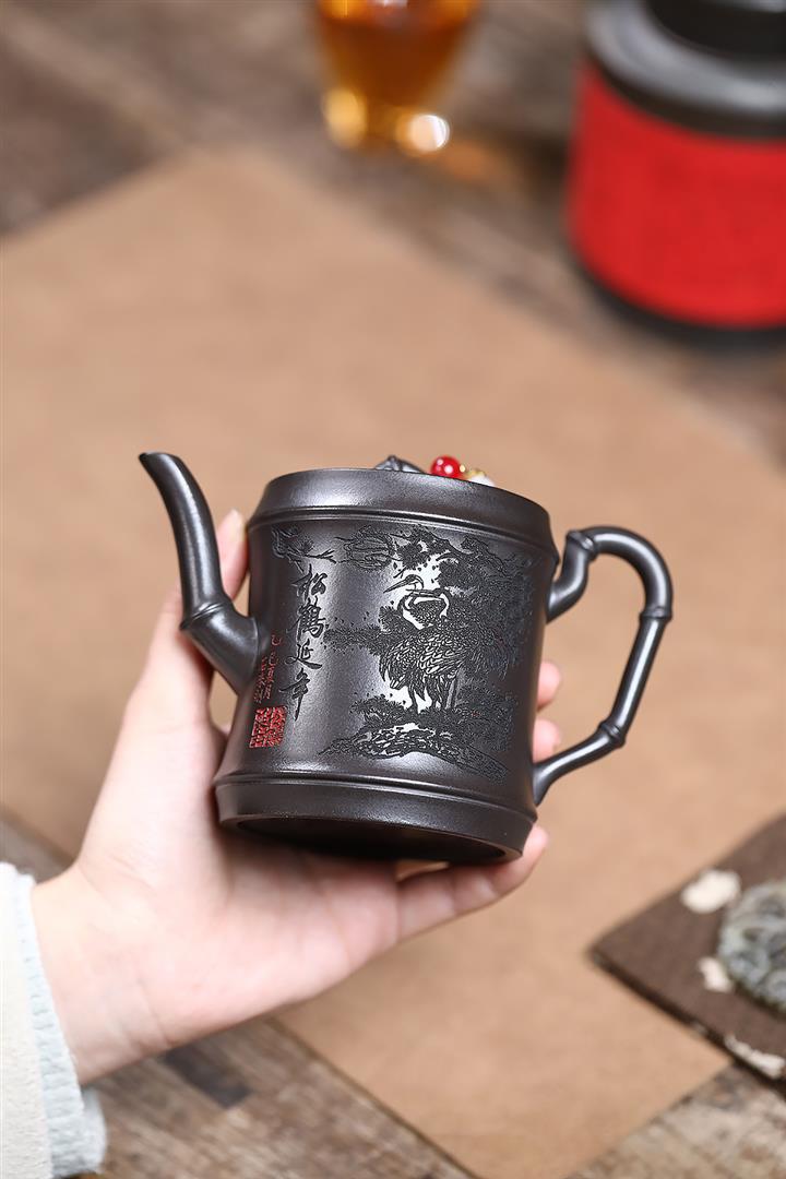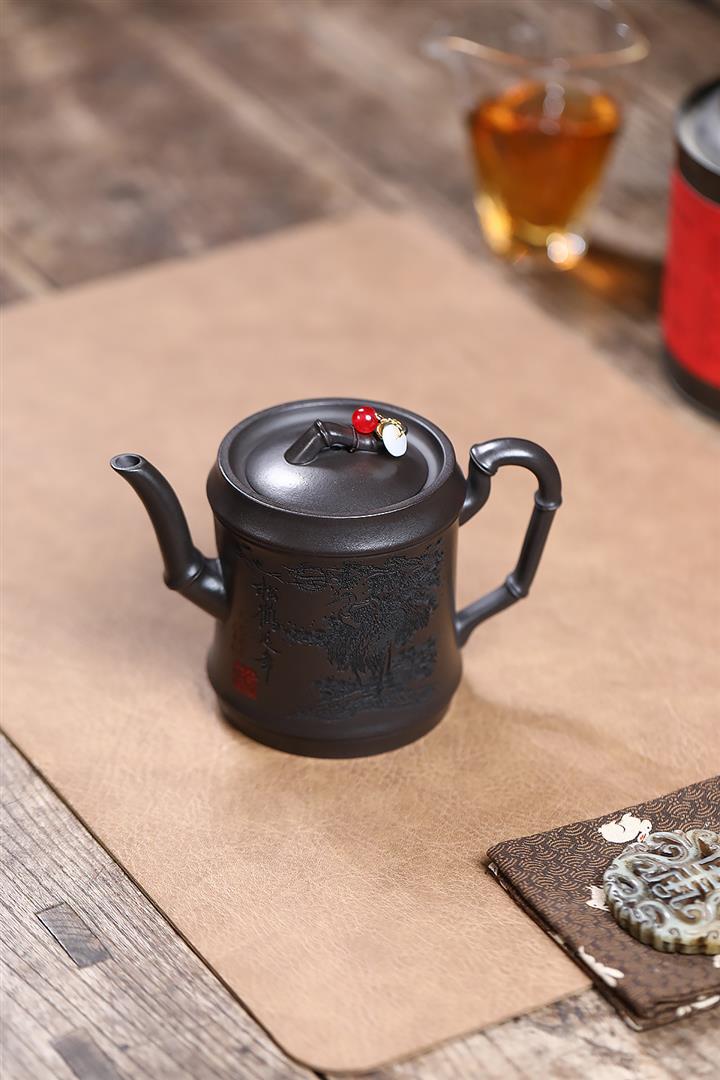 原礦青段泥純手工刻繪周盤茶壺POT6924