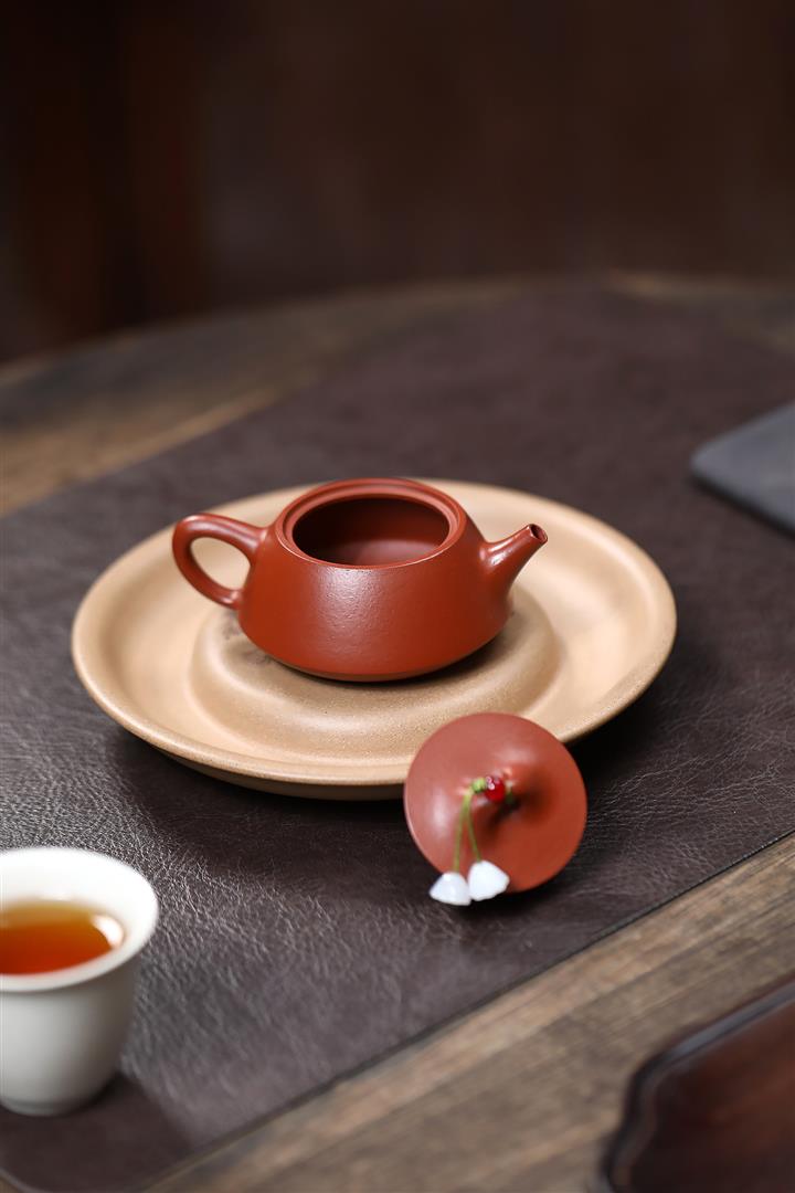 90cc原礦皺皮朱泥小品虛扁茶壺POT8375
