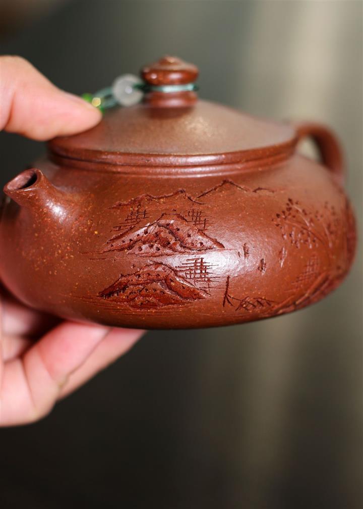 230cc原礦紫泥刻繪山水寒江泡茶壺POT9476