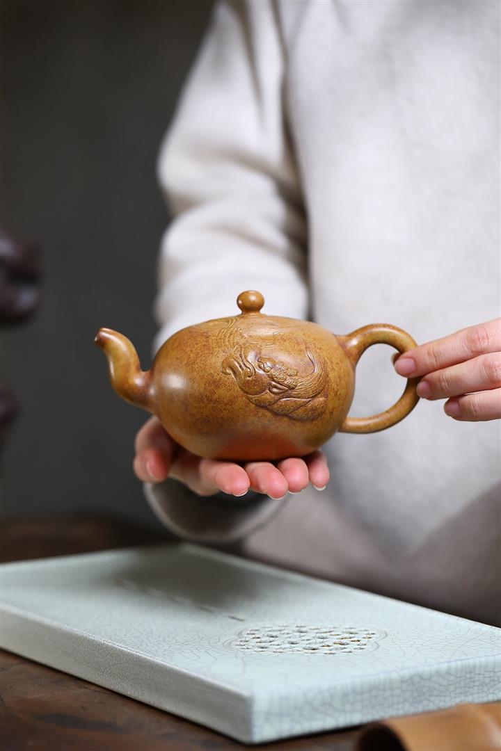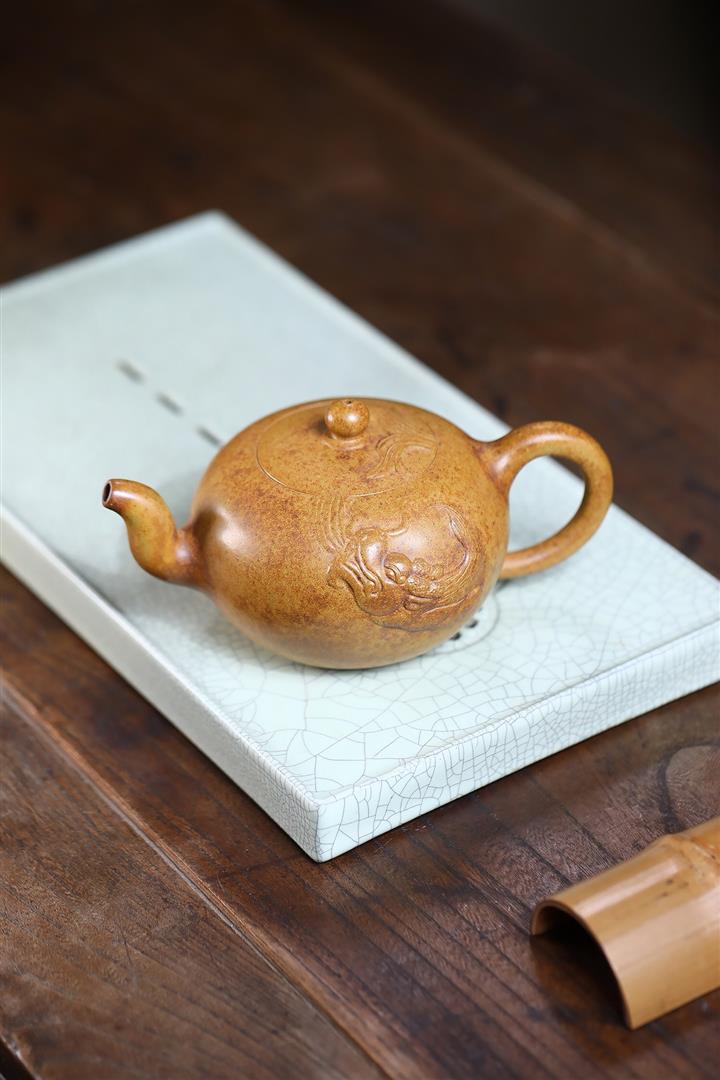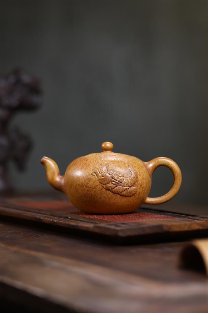 原礦龍骨金砂手工龍紋寒江茶壺POT6903