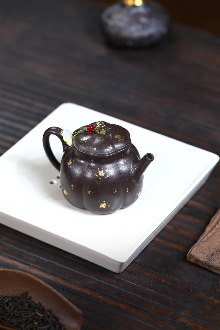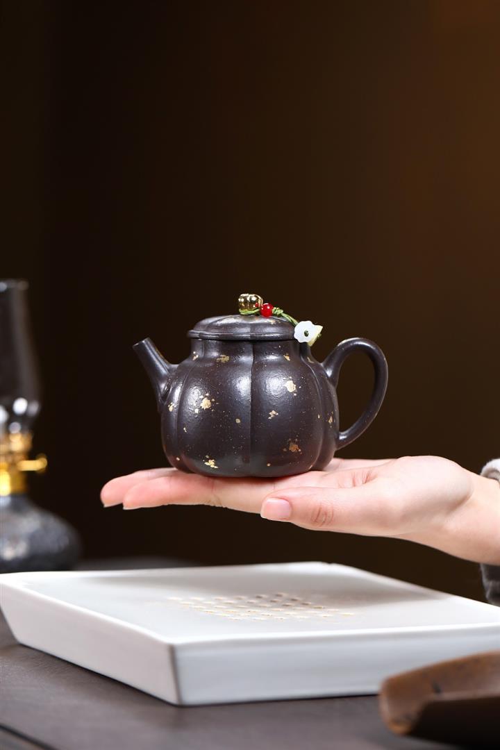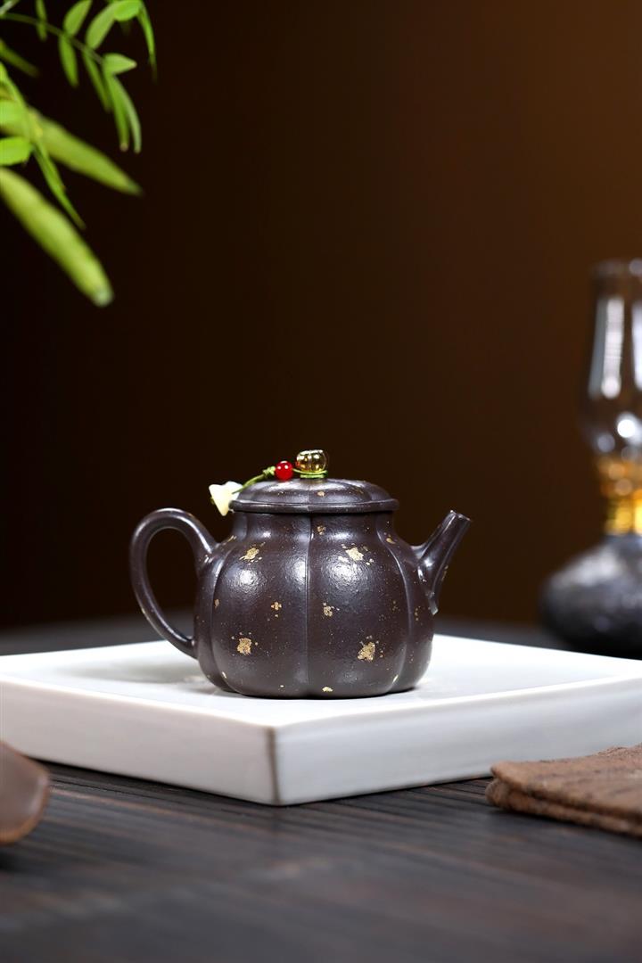 200cc原礦紫玉金砂灑金德鐘泡茶壺POT9519