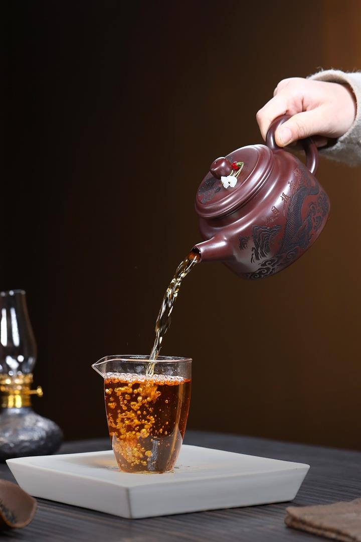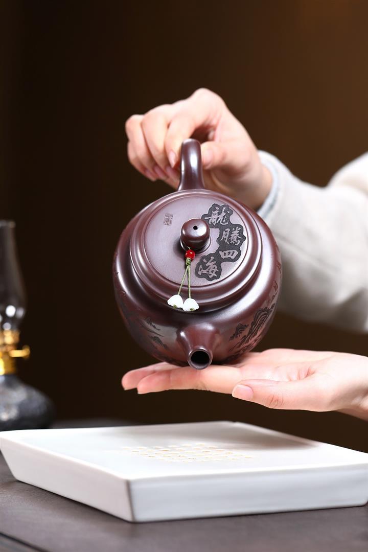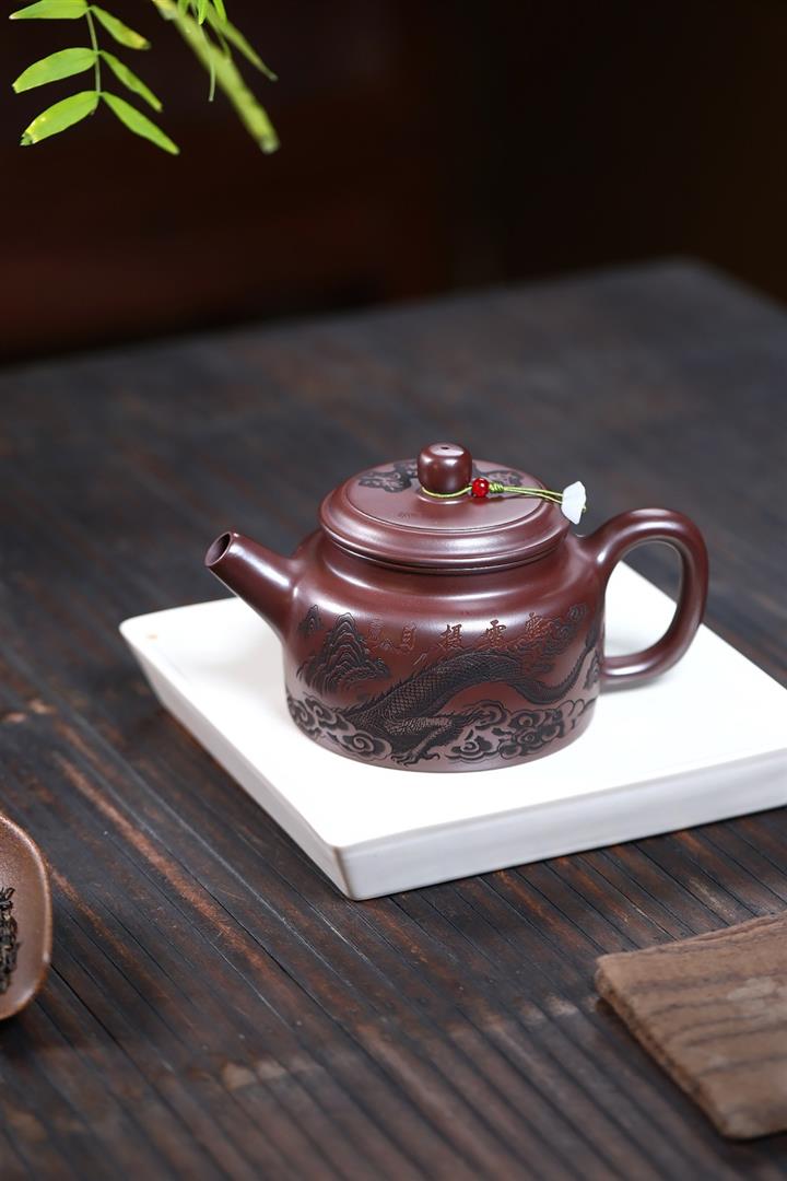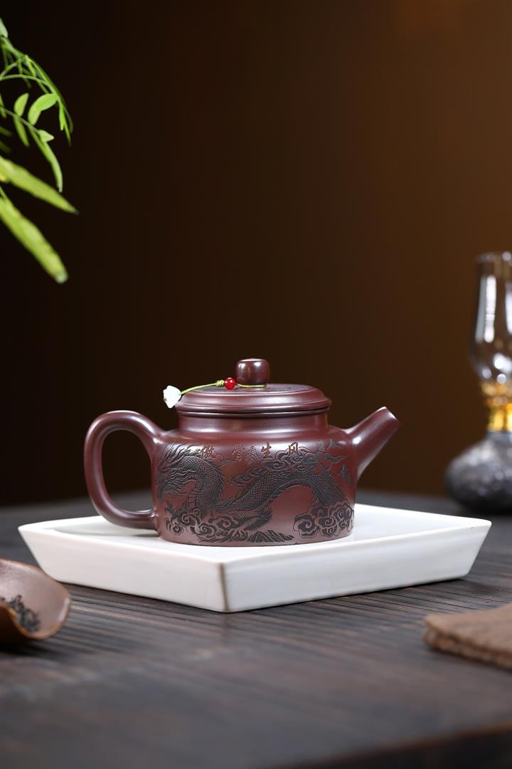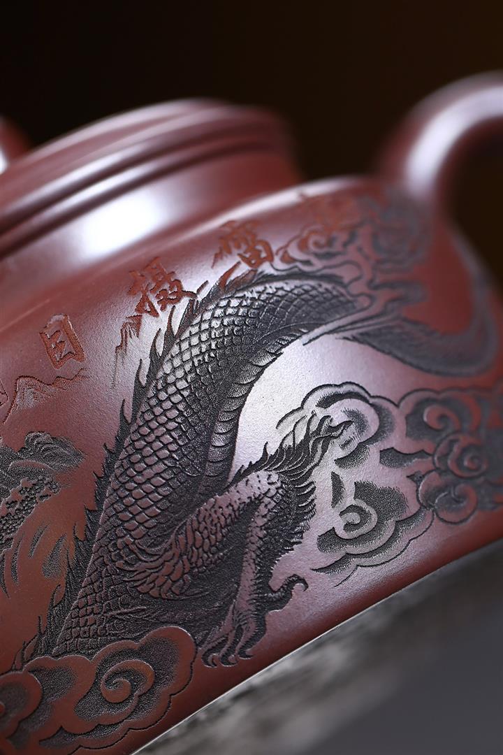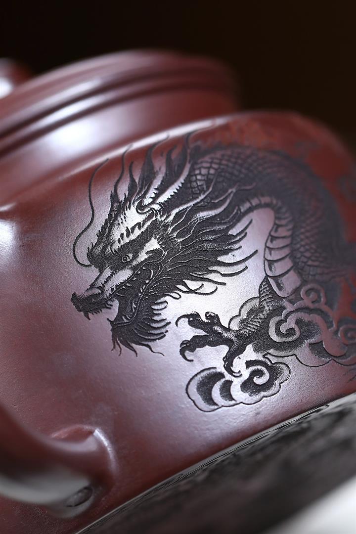 480cc原礦紫朱泥龍紋德鐘泡茶壺POT9520