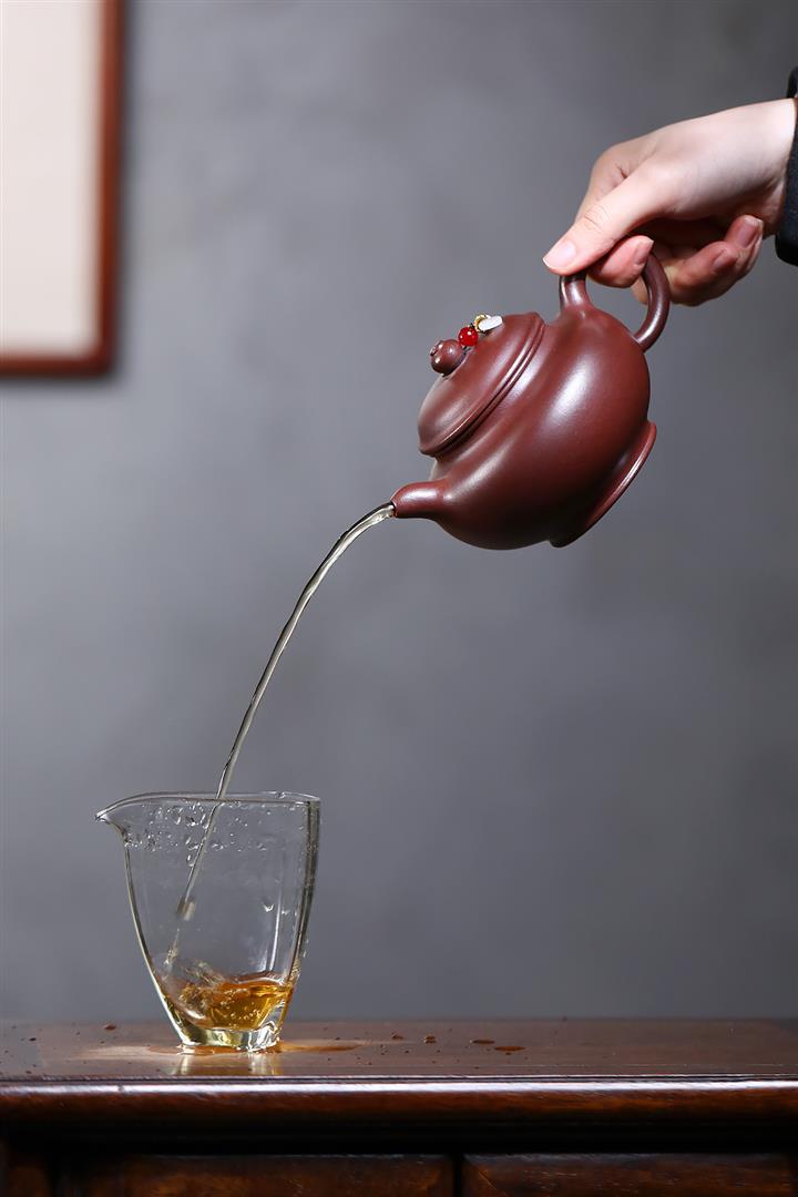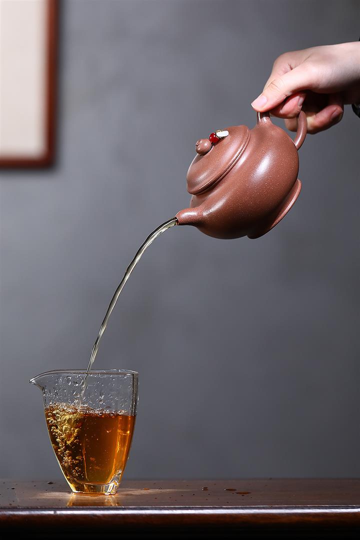 【泥料特點】砂土氣重,似淳實農民,日久使用,漸露鋒芒,養成變化,溫潤莊重。紫砂是壹種雙重氣孔結構的多孔性材質,氣孔微細,密度高。用紫砂壺沏茶,不失原味,且香不渙散,得茶之真香真味。紫砂使用越久,壺身色澤越發光亮照人,氣韻溫雅。紫砂壺長久使用器身會因撫摸擦拭,變得越發溫潤光澤。