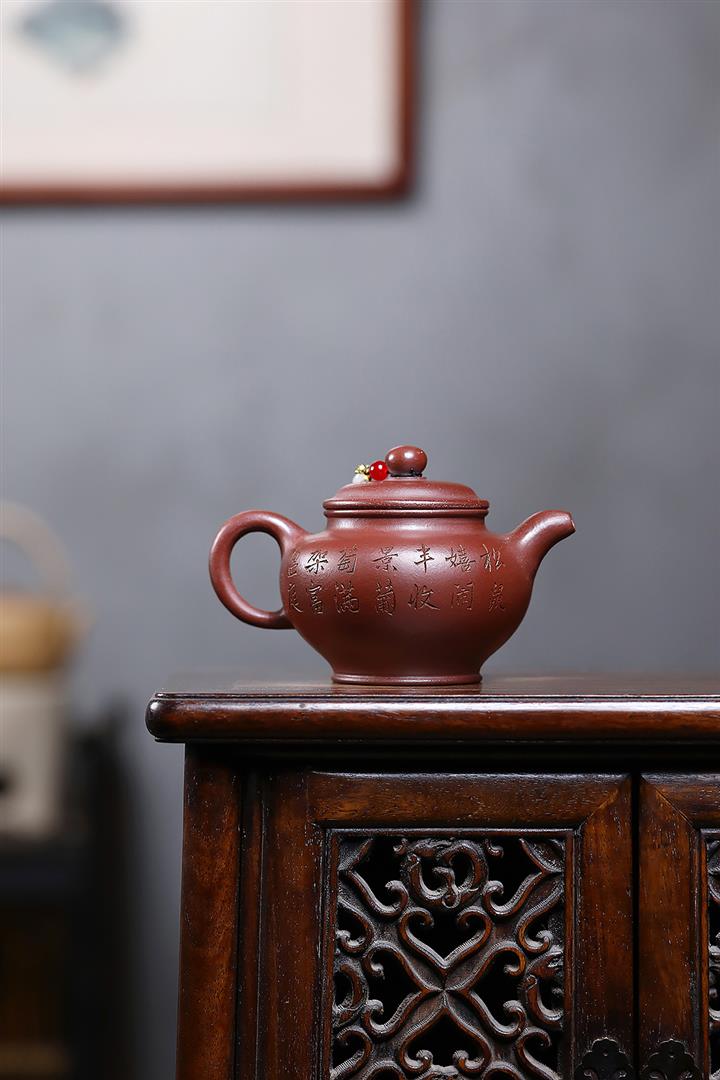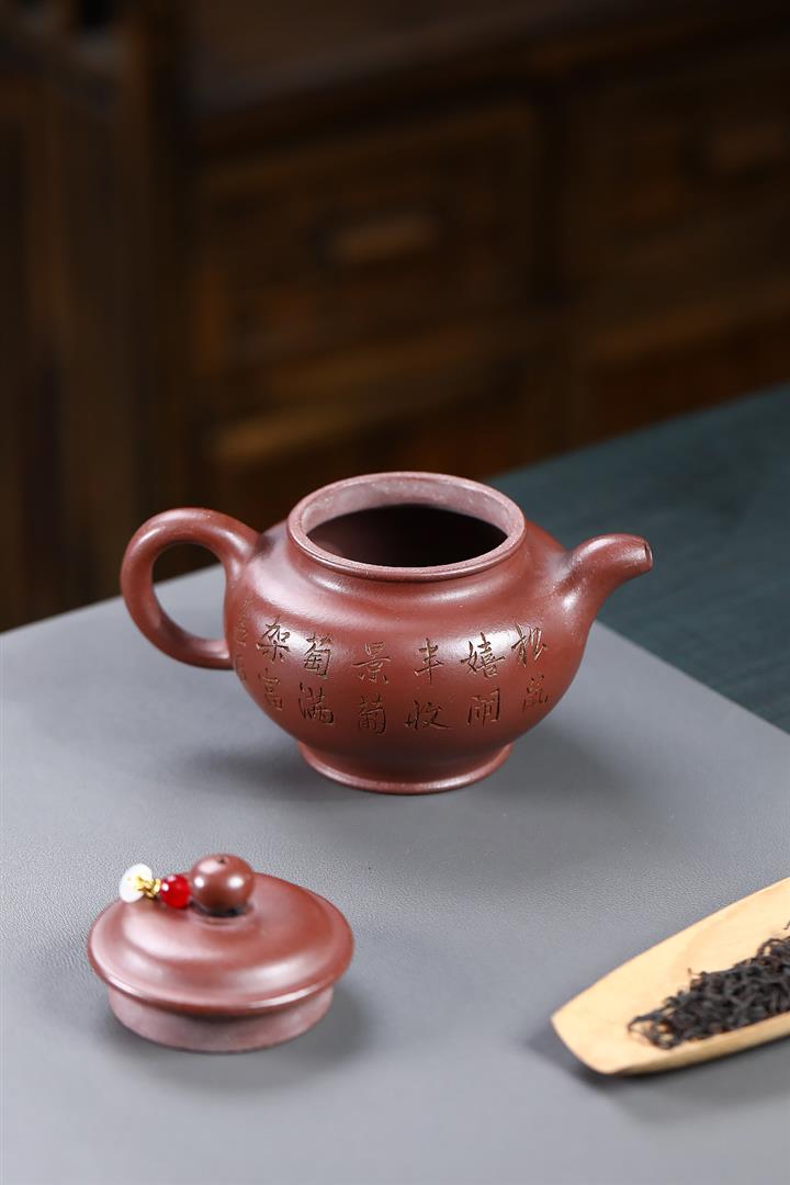 【泥料特點】砂土氣重,似淳實農民,日久使用,漸露鋒芒,養成變化,溫潤莊重。紫砂是壹種雙重氣孔結構的多孔性材質,氣孔微細,密度高。用紫砂壺沏茶,不失原味,且香不渙散,得茶之真香真味。紫砂使用越久,壺身色澤越發光亮照人,氣韻溫雅。紫砂壺長久使用器身會因撫摸擦拭,變得越發溫潤光澤。