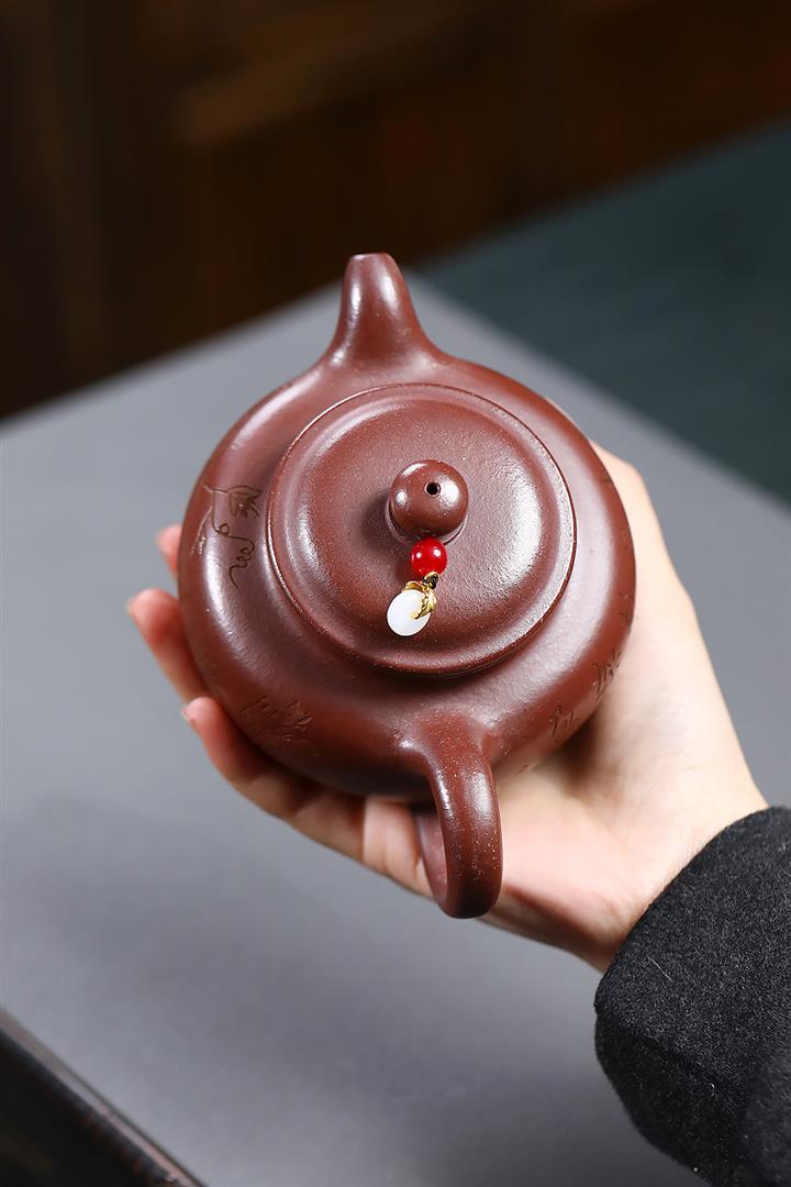【作品介紹】此款壺形線條流暢,壺把,壺嘴,壺身壹氣呵成栩栩如生,是收藏把玩的好壺,泥料色澤古樸典雅,日久使用,漸露鋒芒,養成變化快,溫潤莊重,用其泡茶,使用的年代久,壺身就溫潤,泡出來的茶湯也就醇郁芳馨。