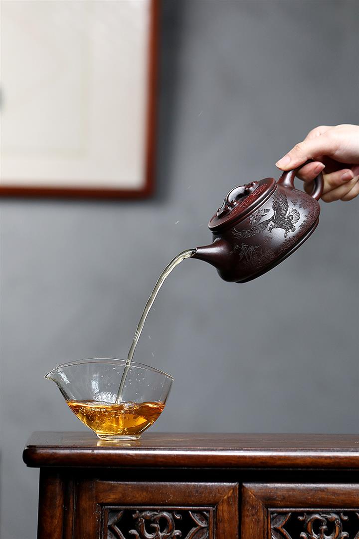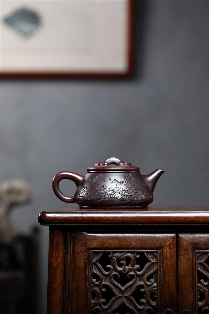 【作品介紹】此款壺形線條流暢,壺把,壺嘴,壺身壹氣呵成栩栩如生,是收藏把玩的好壺,泥料色澤古樸典雅,日久使用,漸露鋒芒,養成變化快,溫潤莊重,用其泡茶,使用的年代久,壺身就溫潤,泡出來的茶湯也就醇郁芳馨。