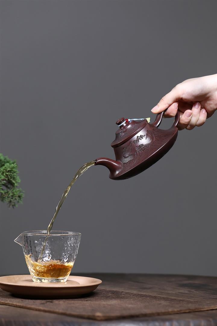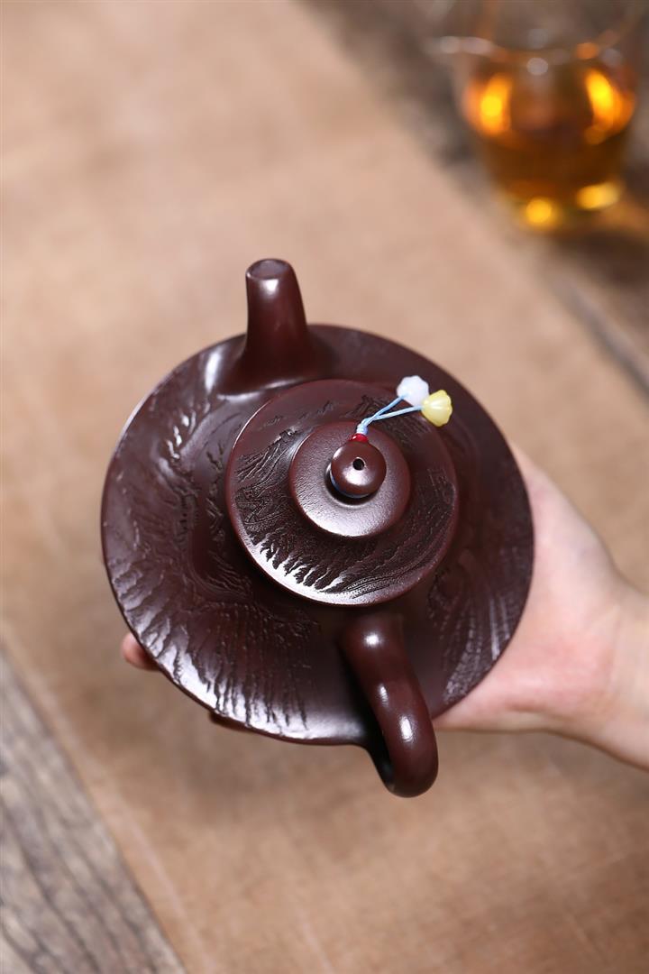 【泥料特點】砂土氣重,似淳實農民,日久使用,漸露鋒芒,養成變化,溫潤莊重。紫砂是壹種雙重氣孔結構的多孔性材質,氣孔微細,密度高。用紫砂壺沏茶,不失原味,且香不渙散,得茶之真香真味。紫砂使用越久,壺身色澤越發光亮照人,氣韻溫雅。紫砂壺長久使用器身會因撫摸擦拭,變得越發溫潤光澤。