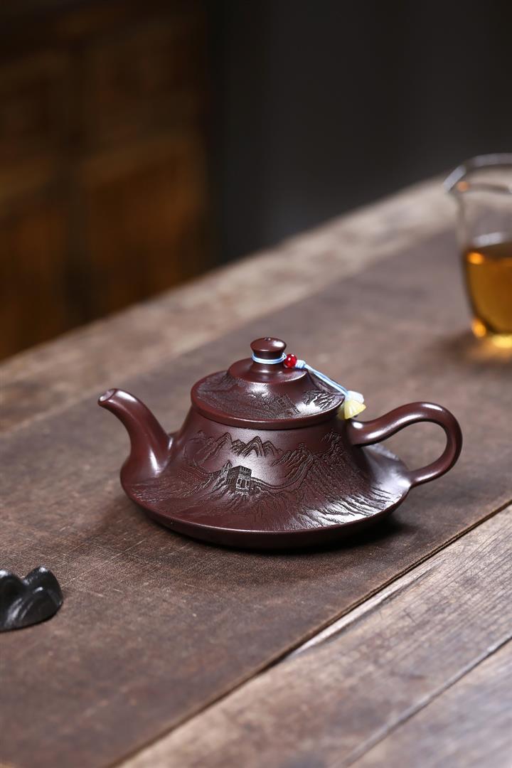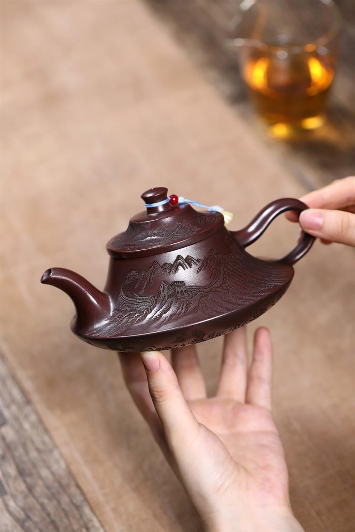 【作品介紹】此款壺形線條流暢,壺把,壺嘴,壺身壹氣呵成栩栩如生,是收藏把玩的好壺,泥料色澤古樸典雅,日久使用,漸露鋒芒,養成變化快,溫潤莊重,用其泡茶,使用的年代久,壺身就溫潤,泡出來的茶湯也就醇郁芳馨。