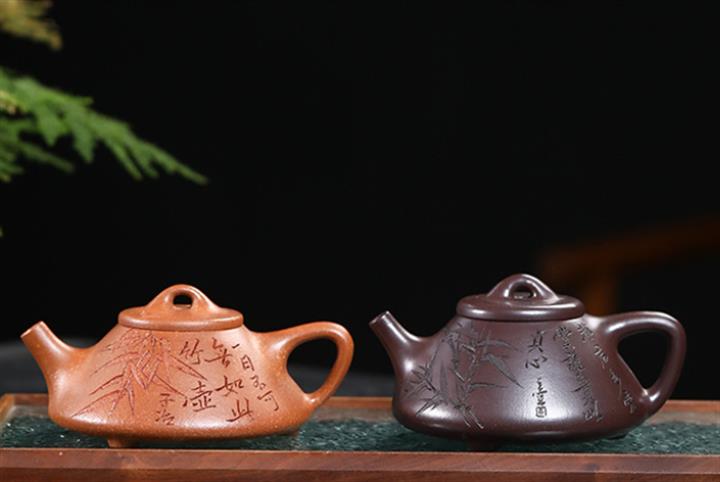 【泥料特點】砂土氣重,似淳實農民,日久使用,漸露鋒芒,養成變化,溫潤莊重。紫砂是壹種雙重氣孔結構的多孔性材質,氣孔微細,密度高。用紫砂壺沏茶,不失原味,且香不渙散,得茶之真香真味。紫砂使用越久,壺身色澤越發光亮照人,氣韻溫雅。紫砂壺長久使用器身會因撫摸擦拭,變得越發溫潤光澤。
