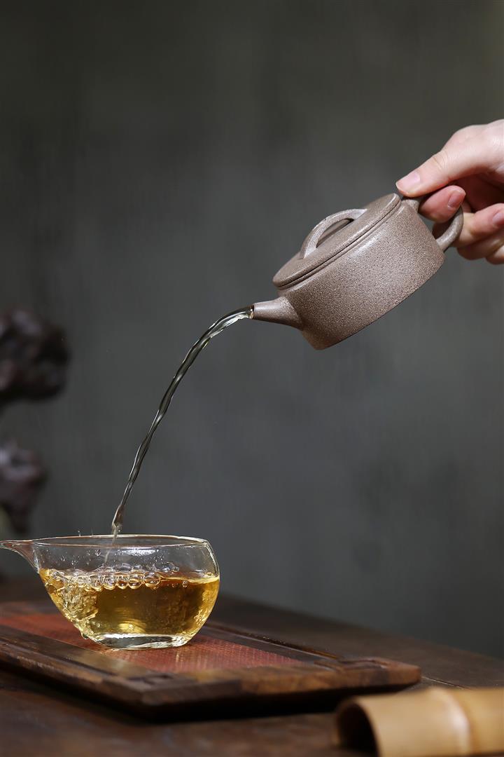 【泥料特點】砂土氣重,似淳實農民,日久使用,漸露鋒芒,養成變化,溫潤莊重。紫砂是壹種雙重氣孔結構的多孔性材質,氣孔微細,密度高。用紫砂壺沏茶,不失原味,且香不渙散,得茶之真香真味。紫砂使用越久,壺身色澤越發光亮照人,氣韻溫雅。紫砂壺長久使用器身會因撫摸擦拭,變得越發溫潤光澤。