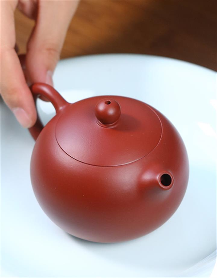 原礦大紅袍朱泥平蓋扁鼓茶壺POT7680