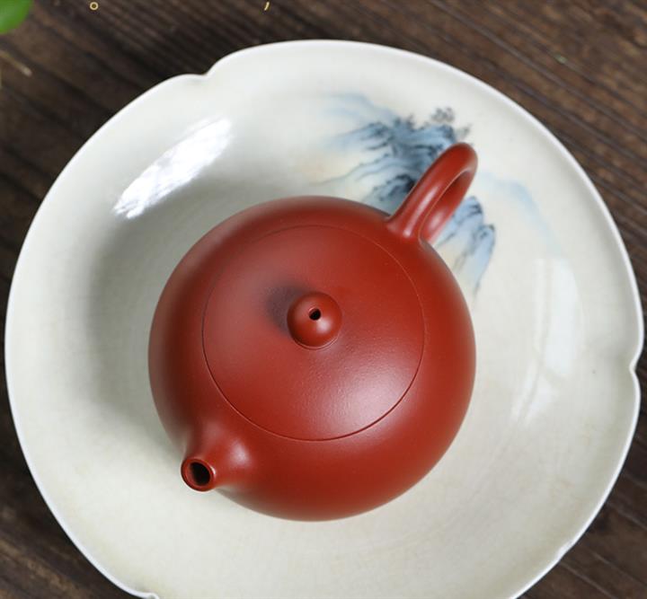 原礦秒幹龍血砂山水扁晨茶壺POT7686