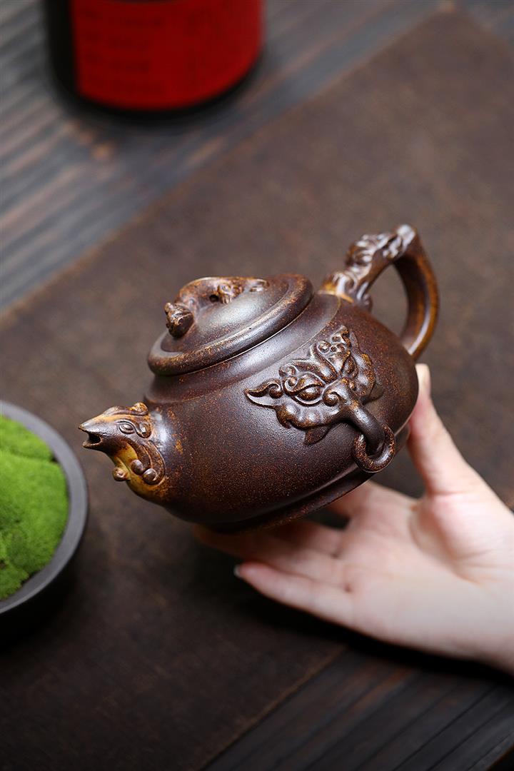 原礦龍骨金砂高溫柴燒一葉知秋茶壺POT6736