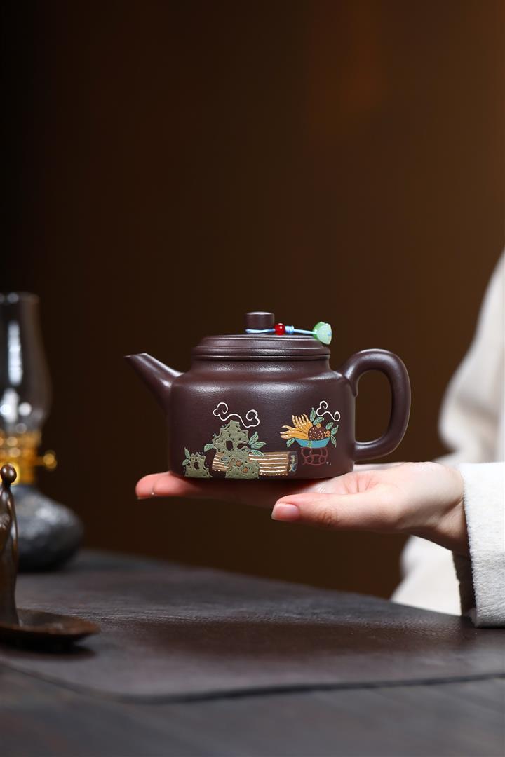 【泥料特點】砂土氣重,似淳實農民,日久使用,漸露鋒芒,養成變化,溫潤莊重。紫砂是壹種雙重氣孔結構的多孔性材質,氣孔微細,密度高。用紫砂壺沏茶,不失原味,且香不渙散,得茶之真香真味。紫砂使用越久,壺身色澤越發光亮照人,氣韻溫雅。紫砂壺長久使用器身會因撫摸擦拭,變得越發溫潤光澤。