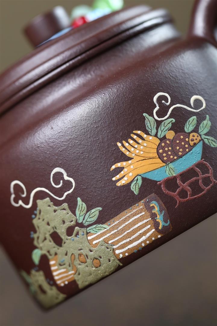原礦紫龍血雲扭如意紫砂壺POT4964