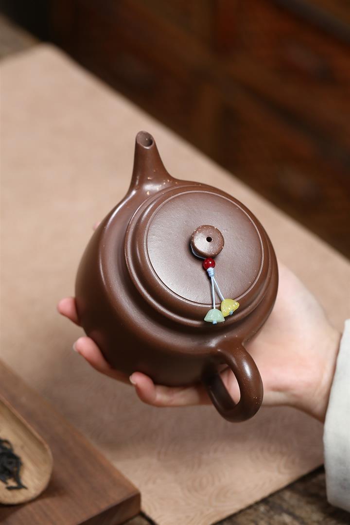 【作品介紹】此款壺形線條流暢,壺把,壺嘴,壺身壹氣呵成栩栩如生,是收藏把玩的好壺,泥料色澤古樸典雅,日久使用,漸露鋒芒,養成變化快,溫潤莊重,用其泡茶,使用的年代久,壺身就溫潤,泡出來的茶湯也就醇郁芳馨。