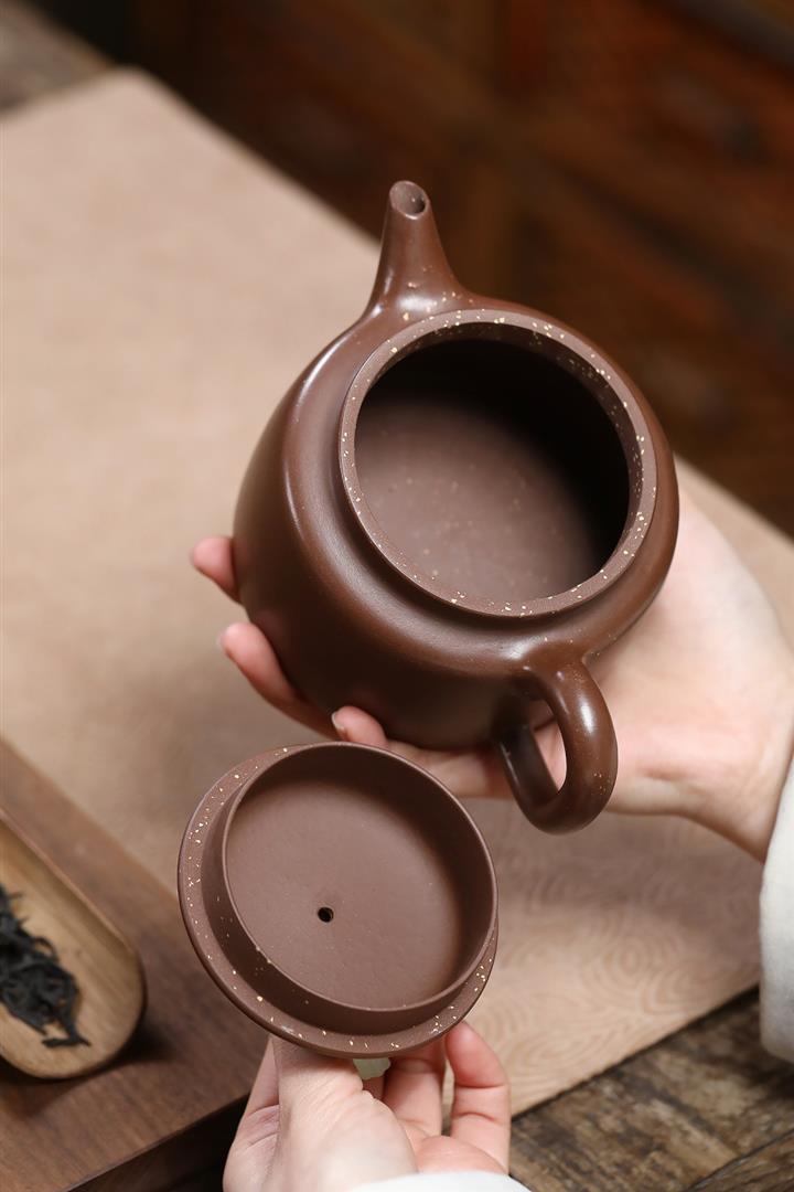 【泥料特點】砂土氣重,似淳實農民,日久使用,漸露鋒芒,養成變化,溫潤莊重。紫砂是壹種雙重氣孔結構的多孔性材質,氣孔微細,密度高。用紫砂壺沏茶,不失原味,且香不渙散,得茶之真香真味。紫砂使用越久,壺身色澤越發光亮照人,氣韻溫雅。紫砂壺長久使用器身會因撫摸擦拭,變得越發溫潤光澤。