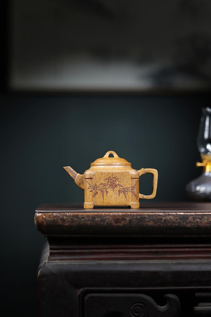 240cc古龍窯柴燒龍骨金砂四方刻竹泡茶壺POT9631