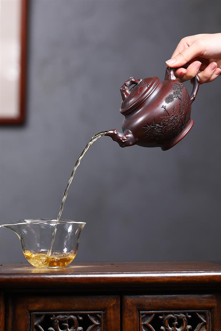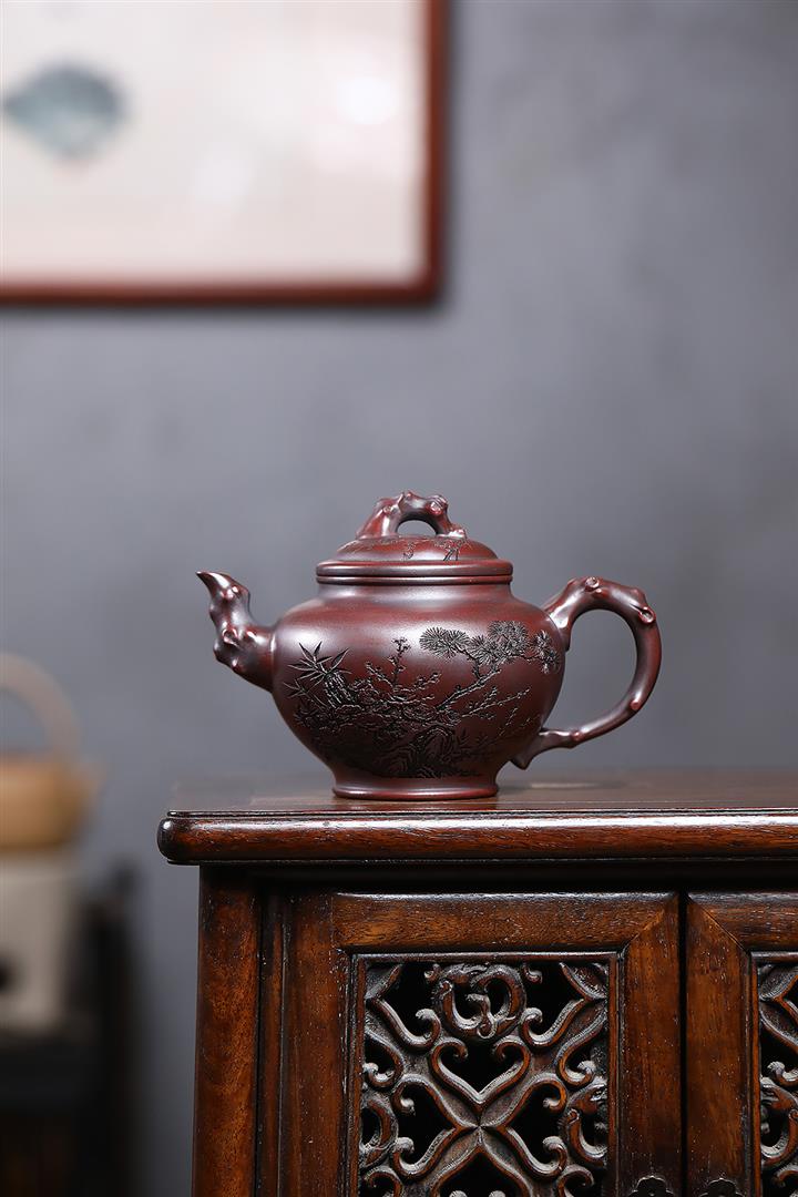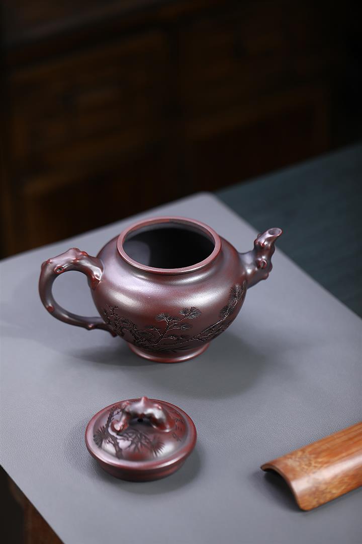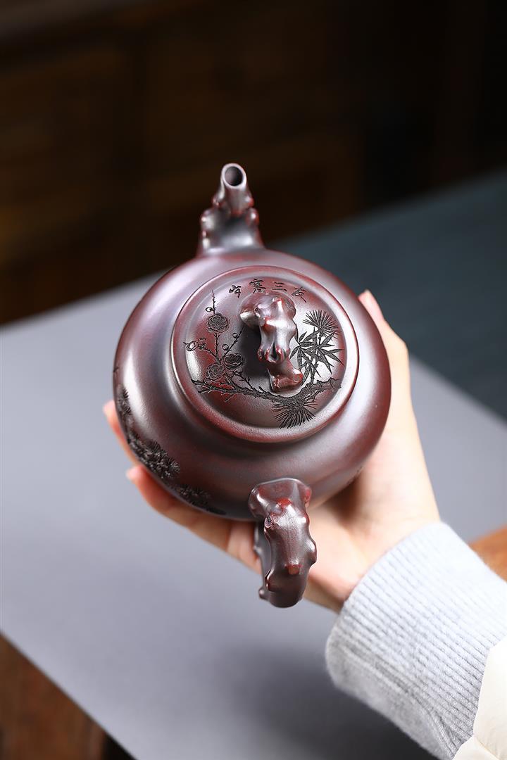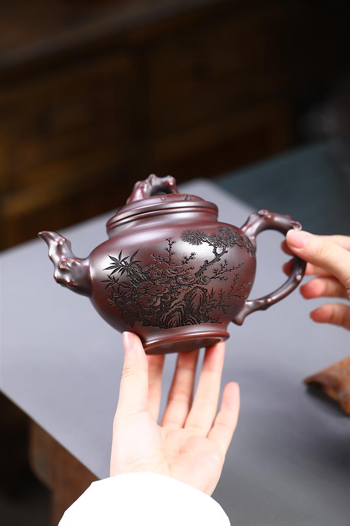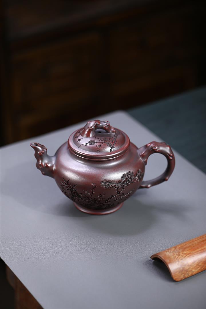 450cc原礦古烏泥歲寒三友報春泡茶壺POT9638