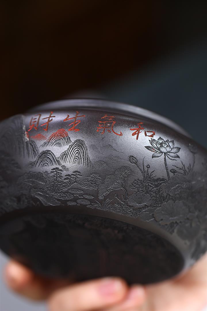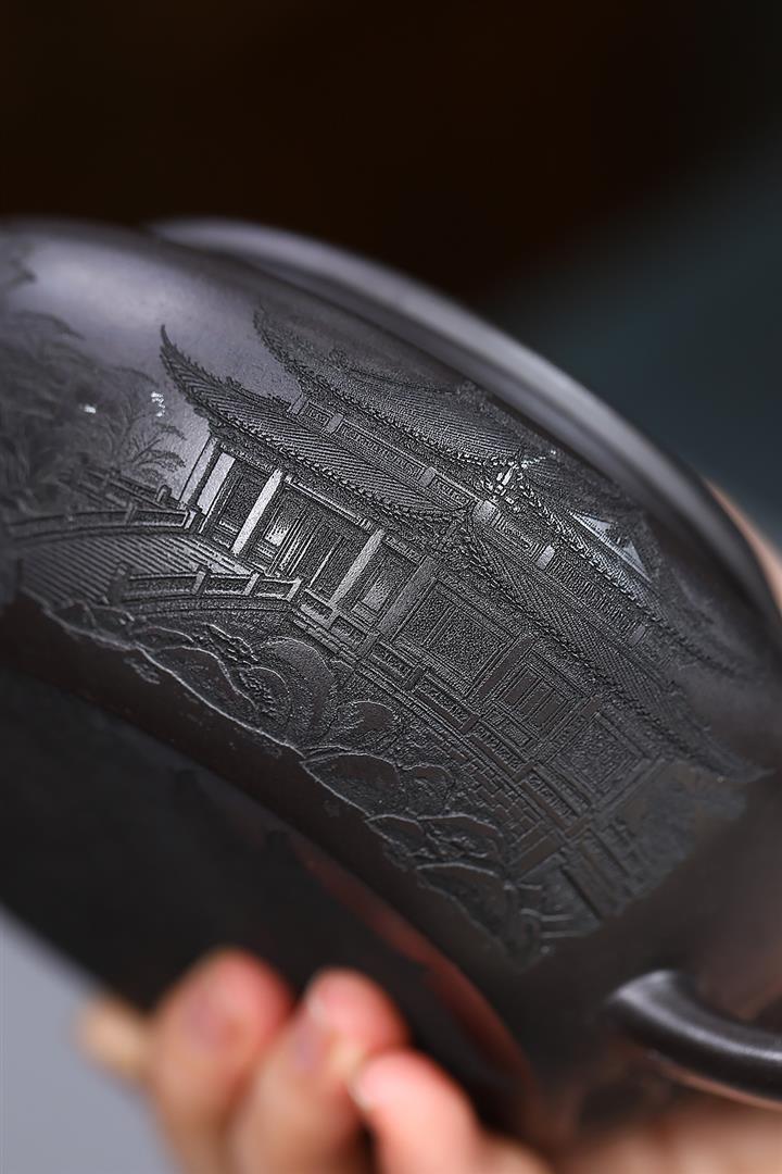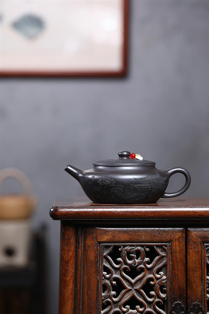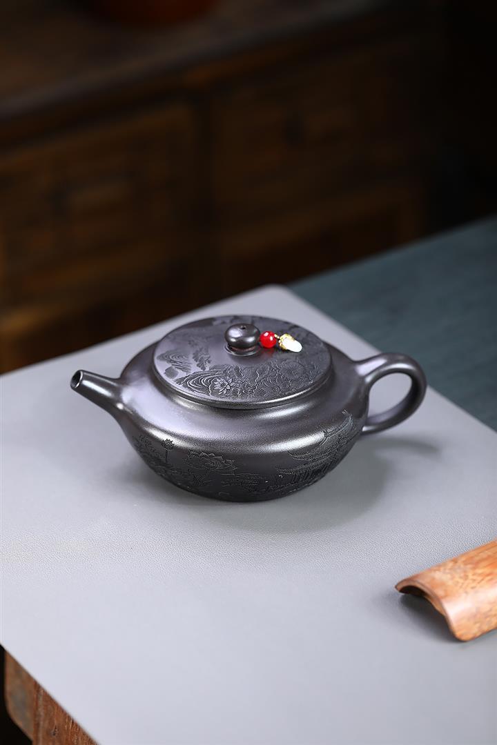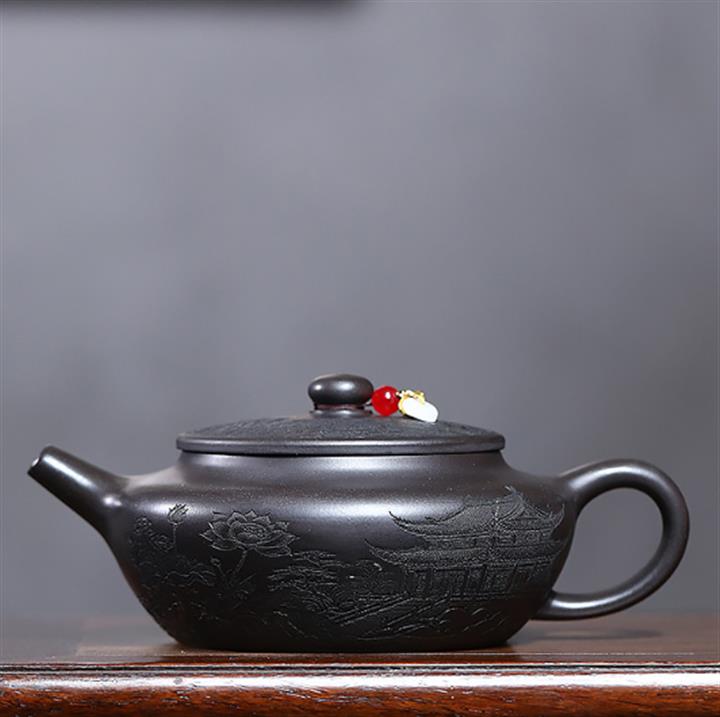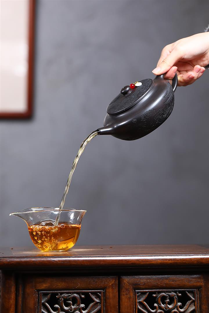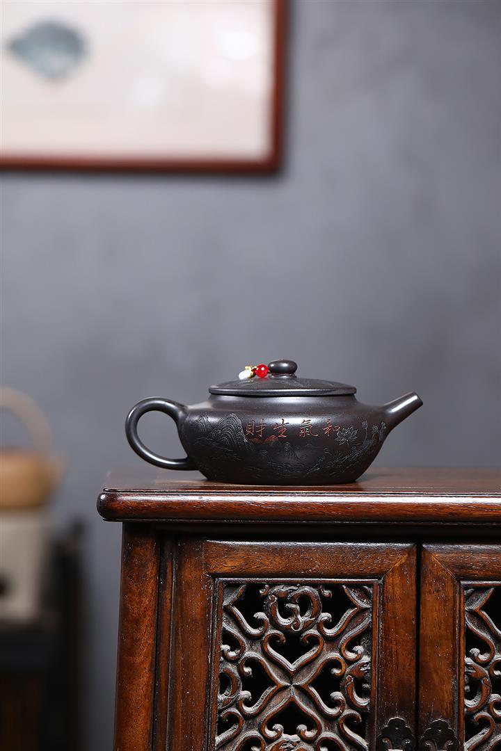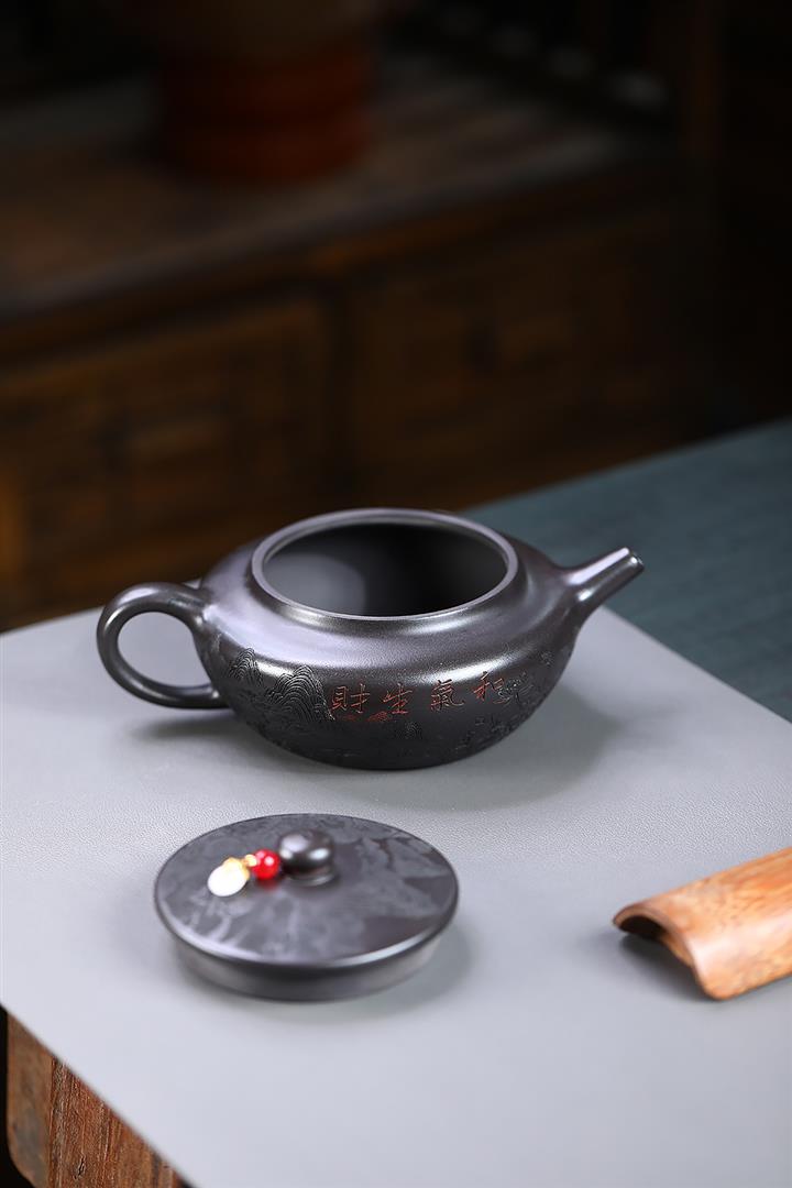 原礦大紅袍手工刻字金潘茶壺POT7120