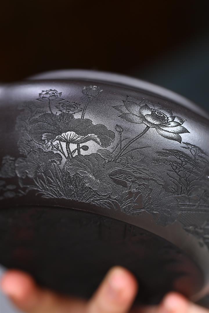 原礦老紫泥泥繪喜上眉梢潘壺POT7119