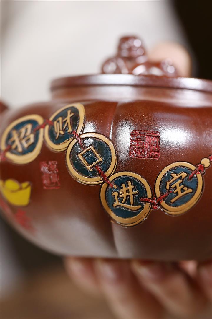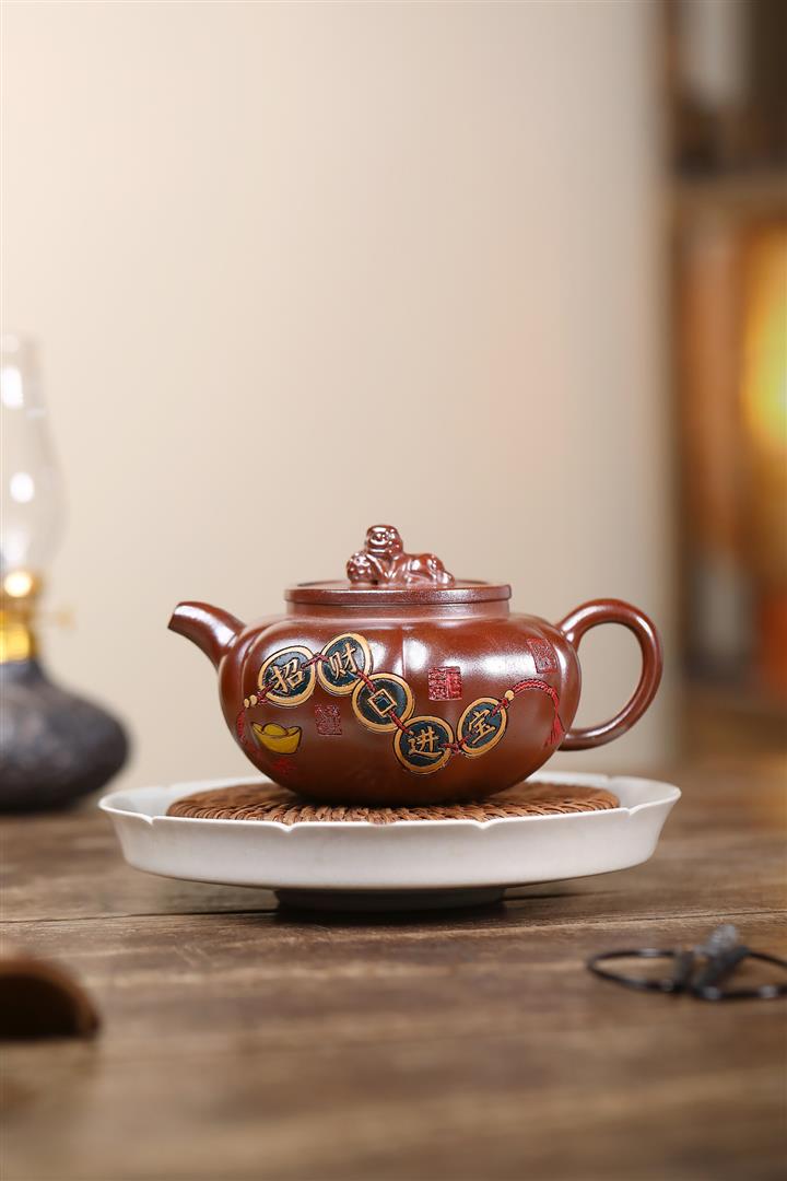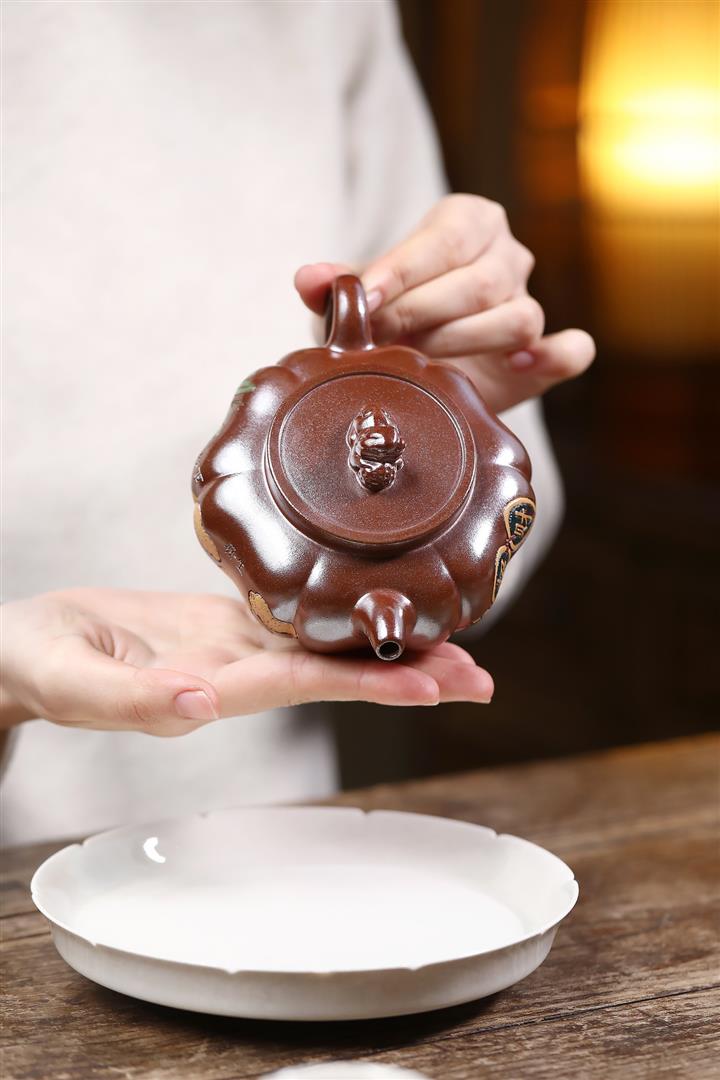 原礦大紅袍撒金美人肩紫砂壺POT4840